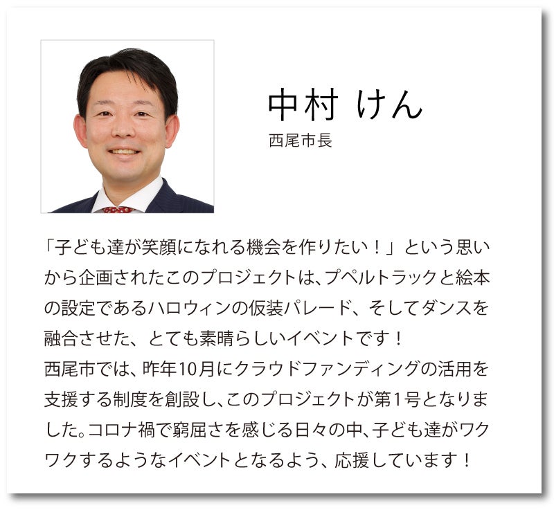 PARADEを開催することで、西尾市内のダンススタジオに通う子どもたちにダンス披露の場と、来場されたお子さんへは大手テーマパーククオリティのパレードと、プペルトラック光る絵本展を届け、子どもたちがひとときでも“笑顔になれる時間”をつくります。