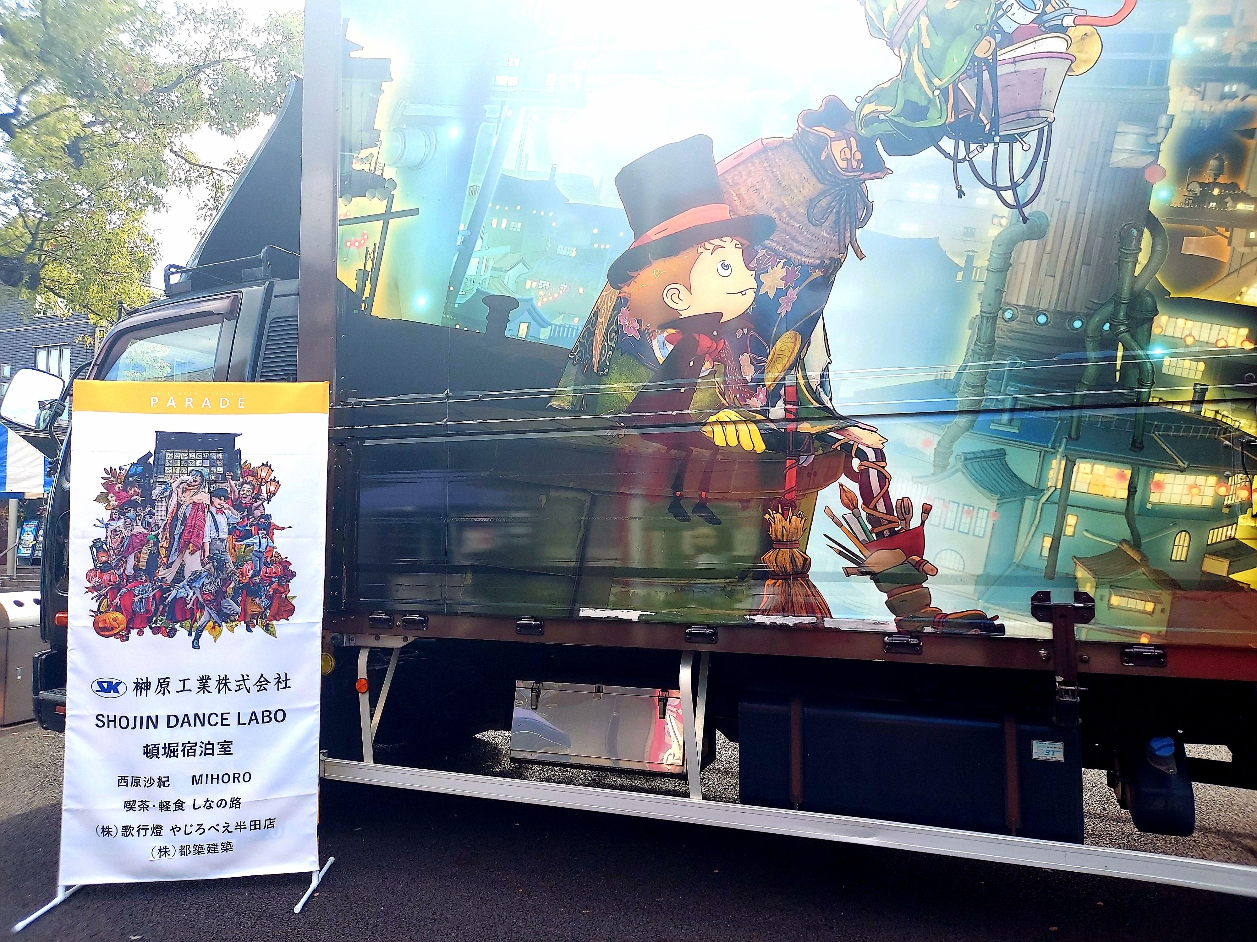 PARADE当日の会場ではプペルトラックのヨコに約180×90cmの大きなタペストリーでお名前を掲示させていただきました。