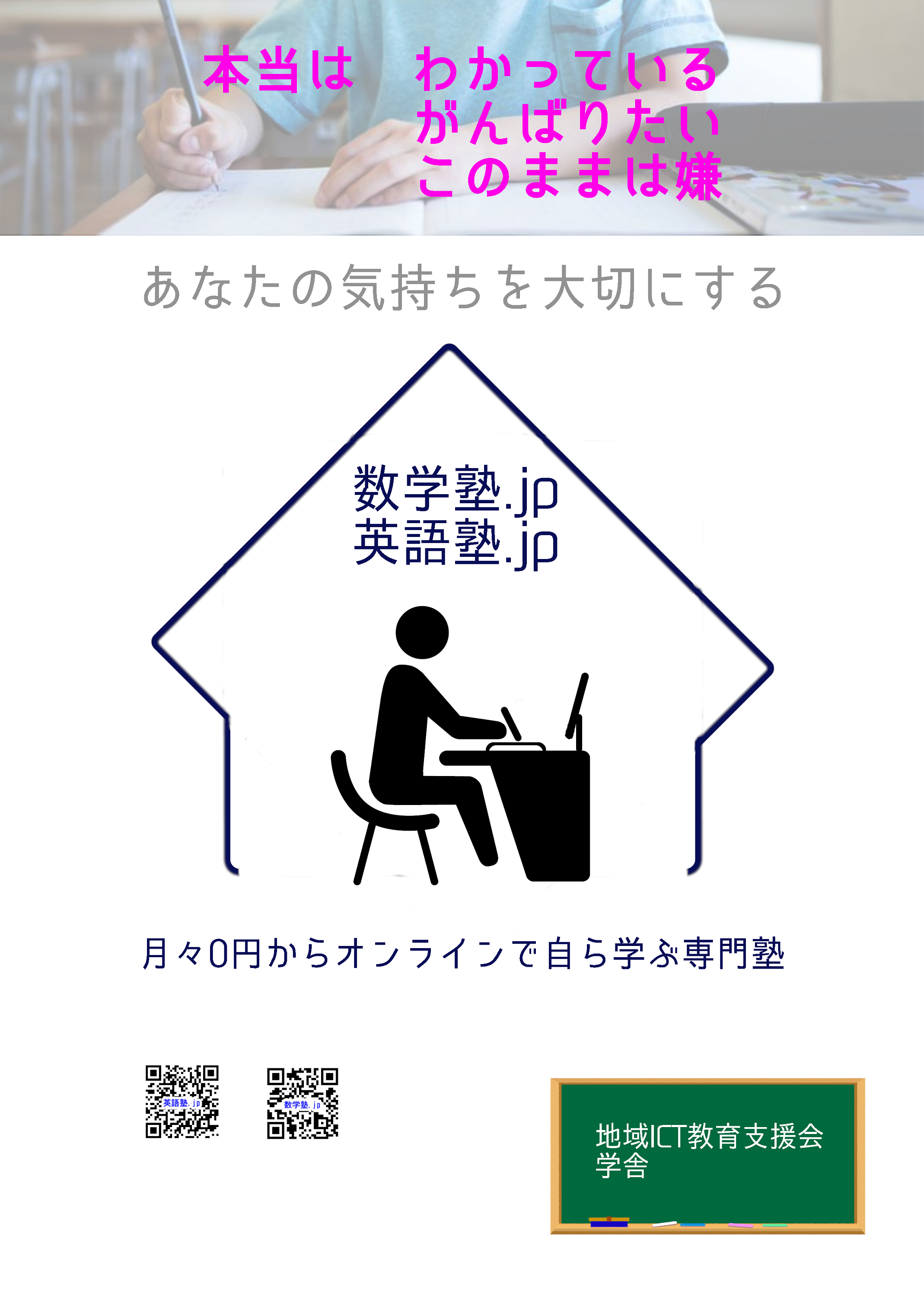 地域ICT教育支援会学舎で運営しているものは、オンライン教材ばかりになるためなかなか全員を対象にしたサービスがなく大変恐縮ではありますが、スクールとしては確実に安いかと思います。