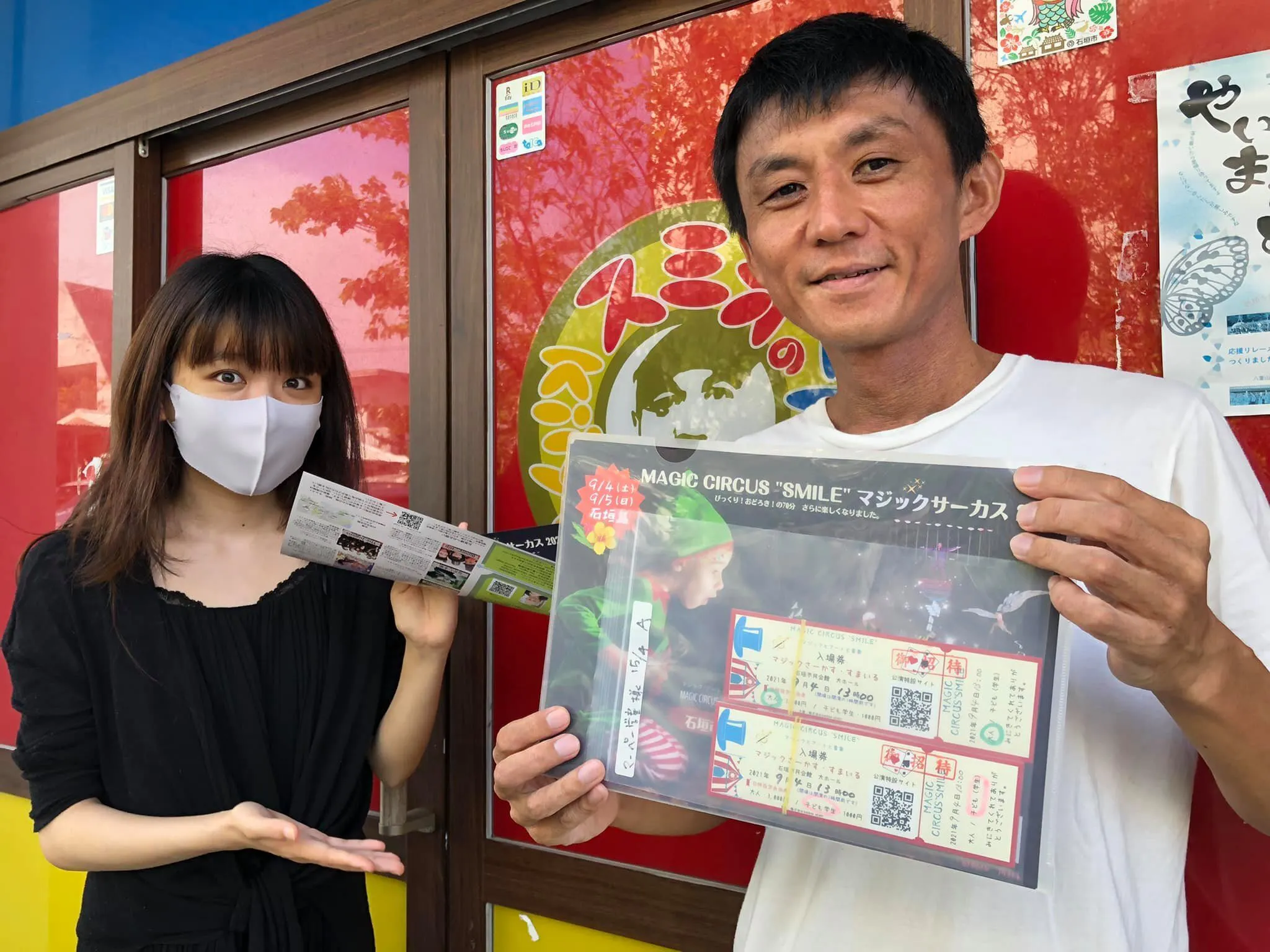 マジックサーカスSMILEのご招待券、マーペー学童の通崎さんはドミトリーまで取りに来て下さいました。