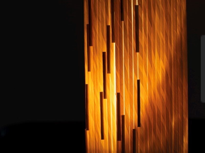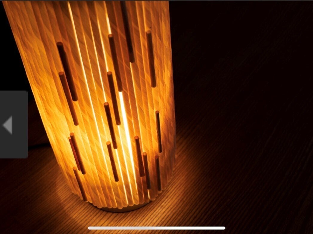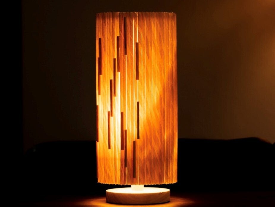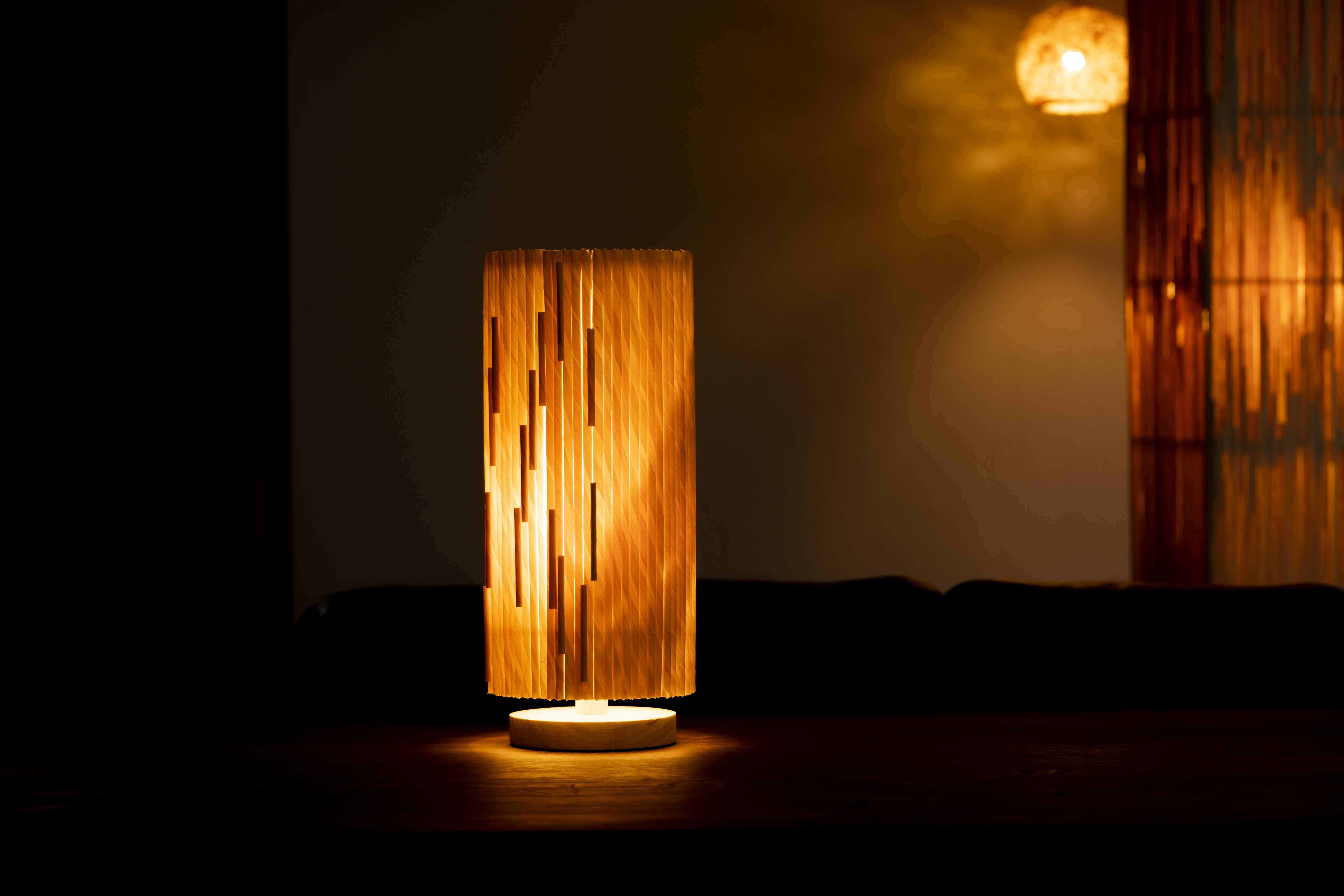 筒状に巻かれたフォルムから木目の風合いを感じる独特の光が空間を暖かく包み込みます。
