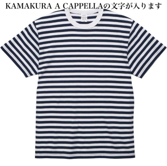 オリジナルTシャツB 白X青ボーダーに赤で文字が背中に入ります