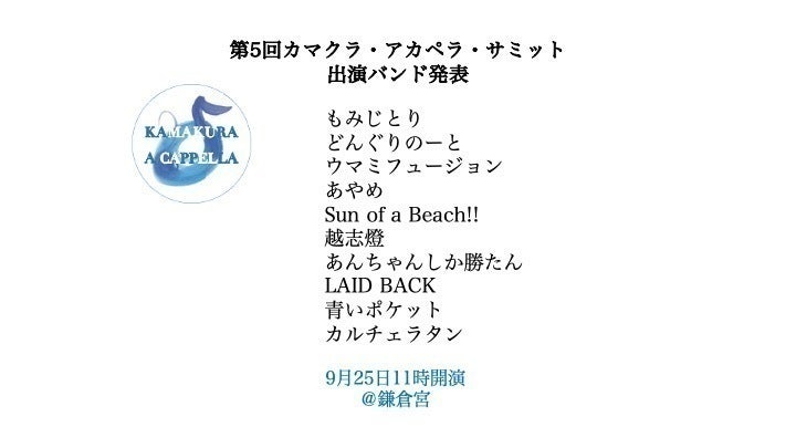 もっと見る第5回カマクラ・アカペラ・サミット終了のお知らせとお礼
