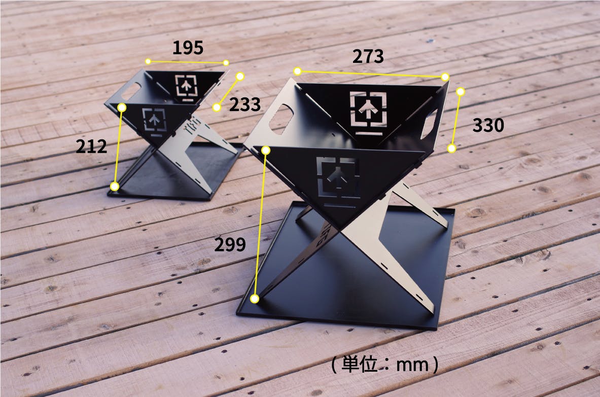 ファミリーキャンプやグループキャンプの時はLで調理を、ソロキャンプや他に調理器具がある時はSでじっくり焚き火を楽しむ、とキャンプスタイルによってお選びいただけます。