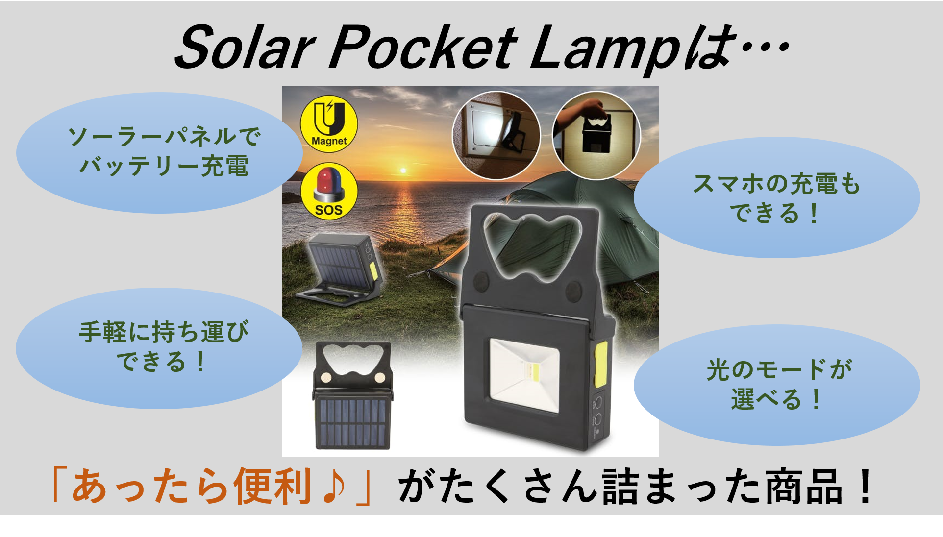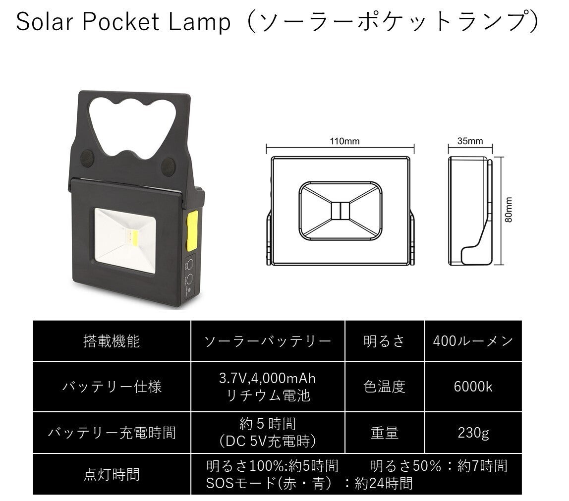〈Solar Pocket Lamp〉はソーラーパネルとLEDライトが一体型になったソーラーライトです!