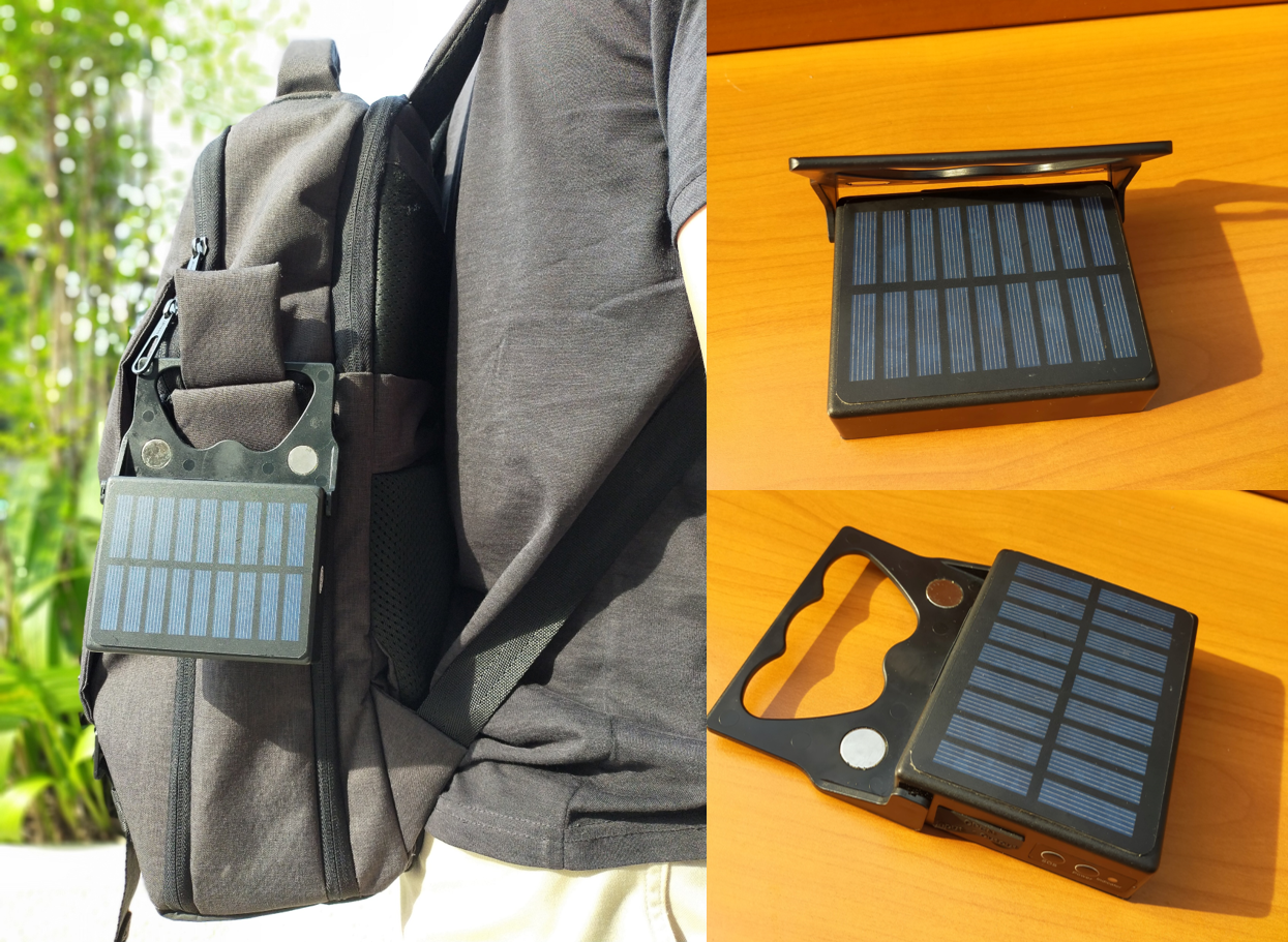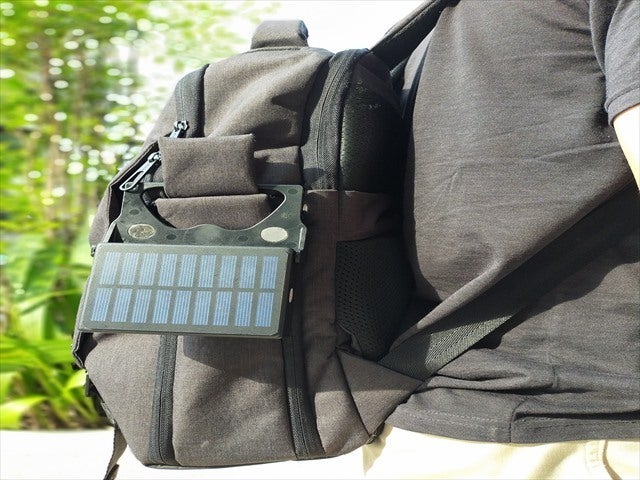 そのまま置いたり、リュックにかけて歩いたりとソーラーでの充電方法は様々
