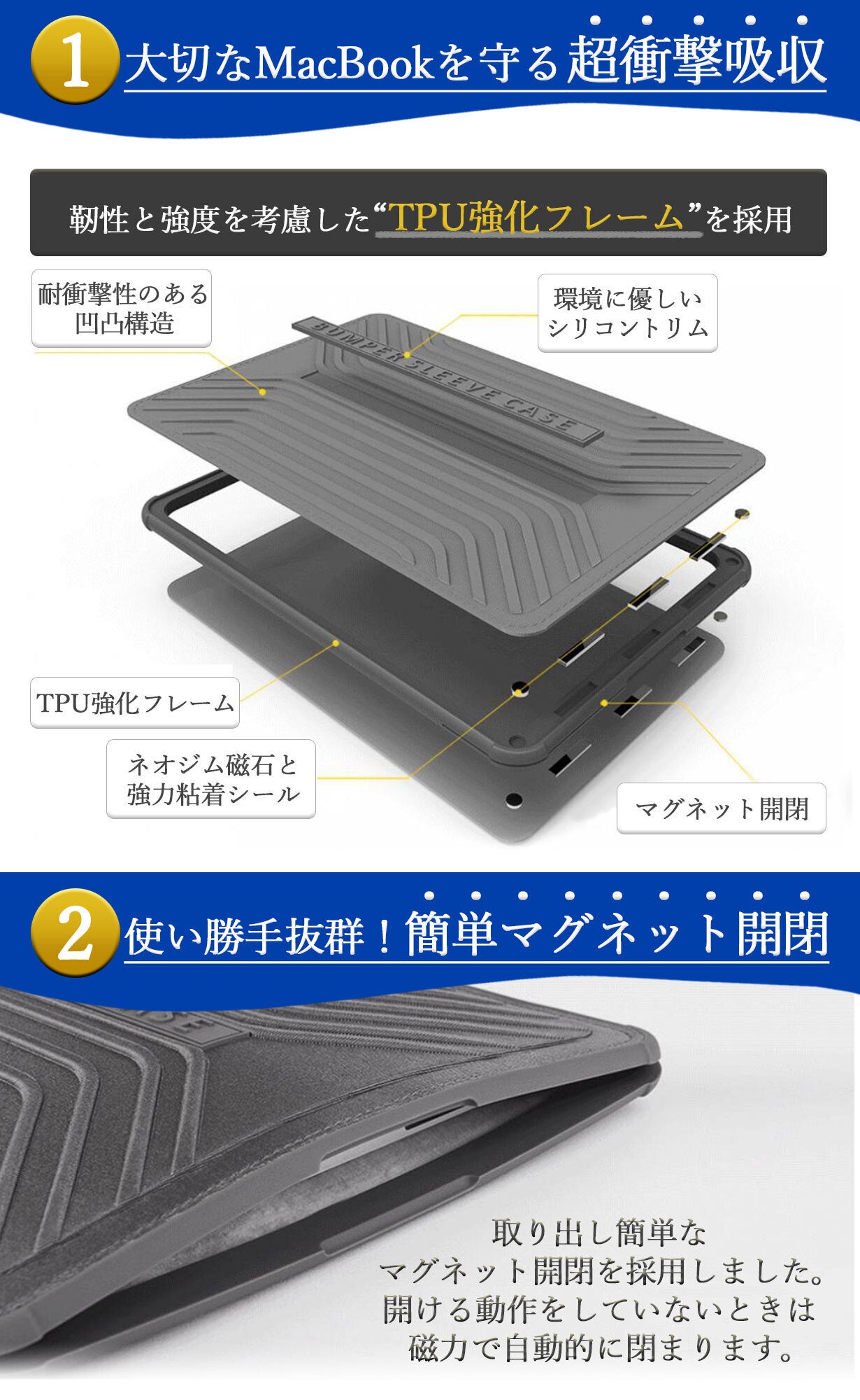 TPU素材で、頑丈にフレームを作り、裏地には起毛を採用し、大切なPCを柔らかく包み込みます。
