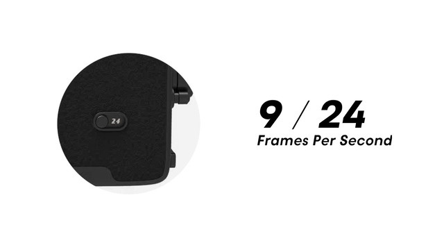 切り替えは横のつまみ部分を変えるだけ。9fpsはパラパラと映像が切り替わるのに対し、24fpsはゆったりとした映像を映し出します。