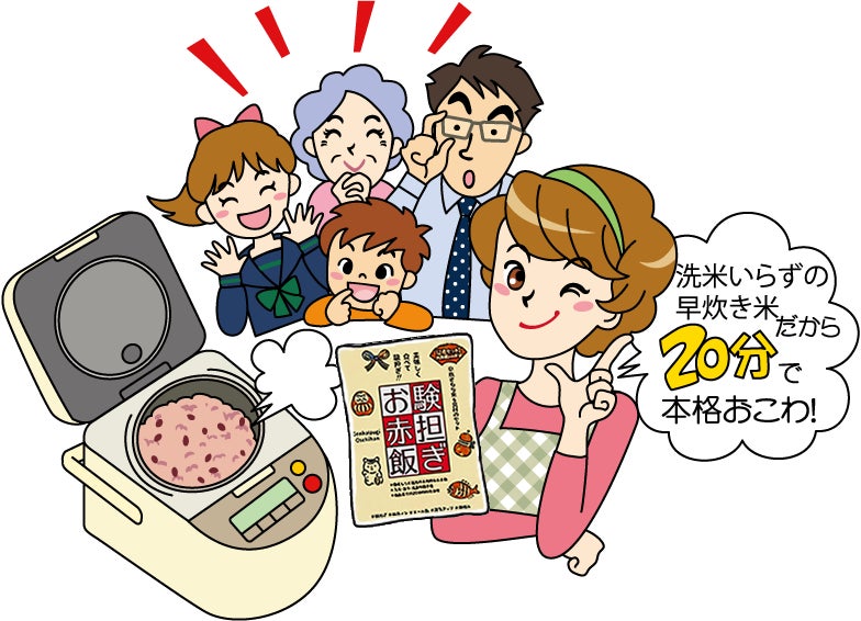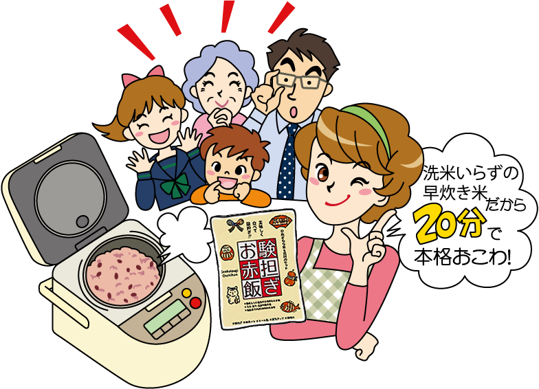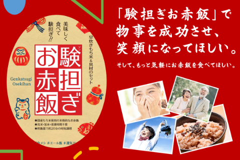 誰が作っても簡単で美味しく、気軽に「験担ぎお赤飯」を食べて験を担ぎ笑顔になってもらいます。