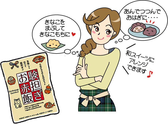 ★きなこもちやおはぎ等にアレンジ!和スイーツとして「験担ぎお赤飯」!
