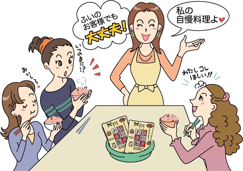 もっと気軽においしく食べていただくために、国産もち米100%を使用し、浸漬時間など下処理が面倒なもち米を早炊き加工という技術を使い、定量具入りスープとの組み合わせで、「洗米不要・水要らず、炊飯器でたった約20分」の簡便性の高い時短商品にします。加水の必要もないことから、誰が作っても炊き上がりが安定=美味しさに繋がります。