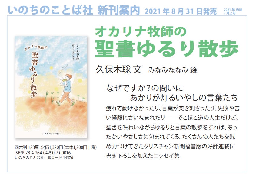 2021年8月 単行本「オカリナ牧師の聖書ゆるり散歩」がいのちのことば社より発売