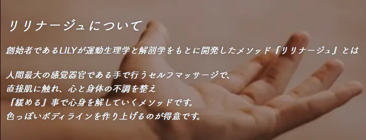 私は、セルフマッサージメソッド『リリナージュ』の講師をしております。
