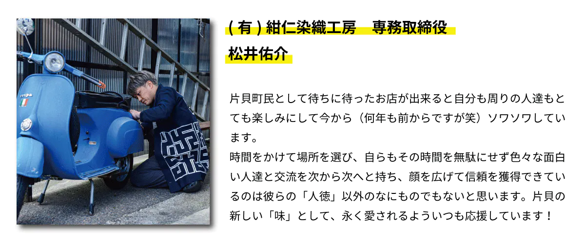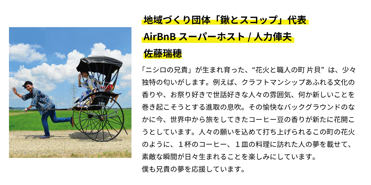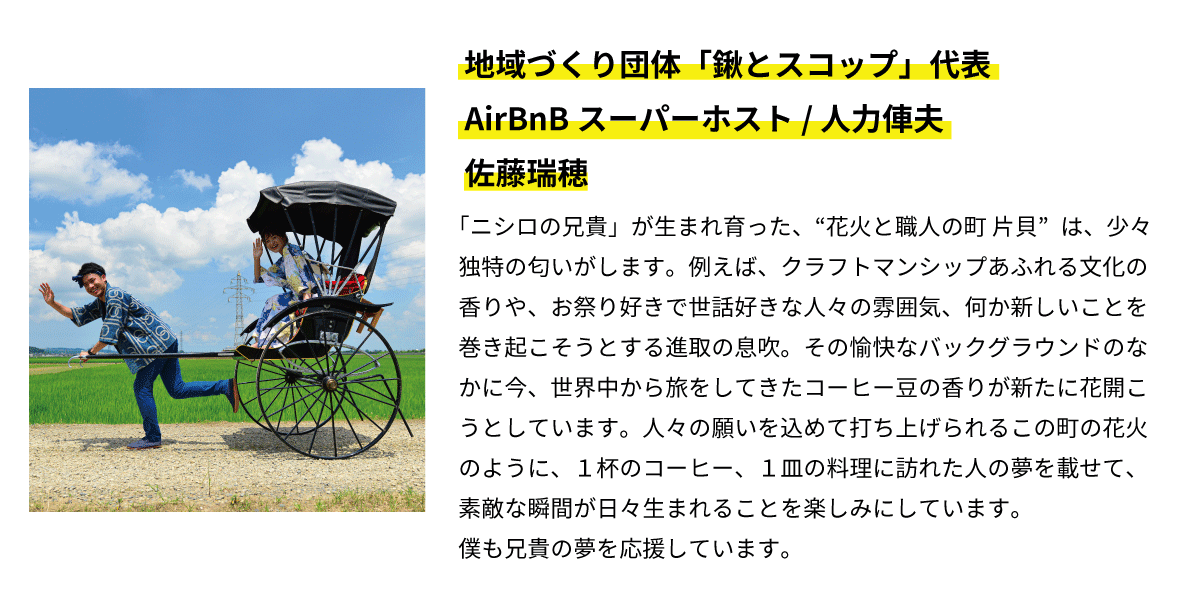 バリスタとして活動すること8年、今まで培ってきたものを結集させ、片貝町でお店を開き、より多くの人にこの町の魅力を届けたいと決意しました。