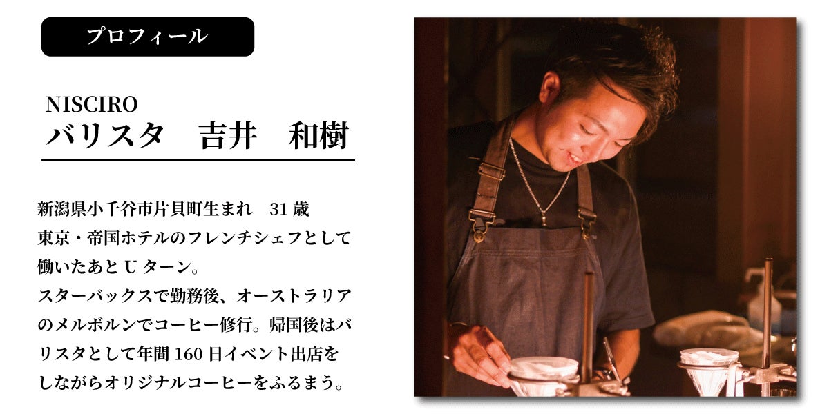 はじめまして、NISCIRO(ニシロ)のバリスタ・吉井和樹です。僕は花火と職人の町・新潟県片貝町に生まれました。
