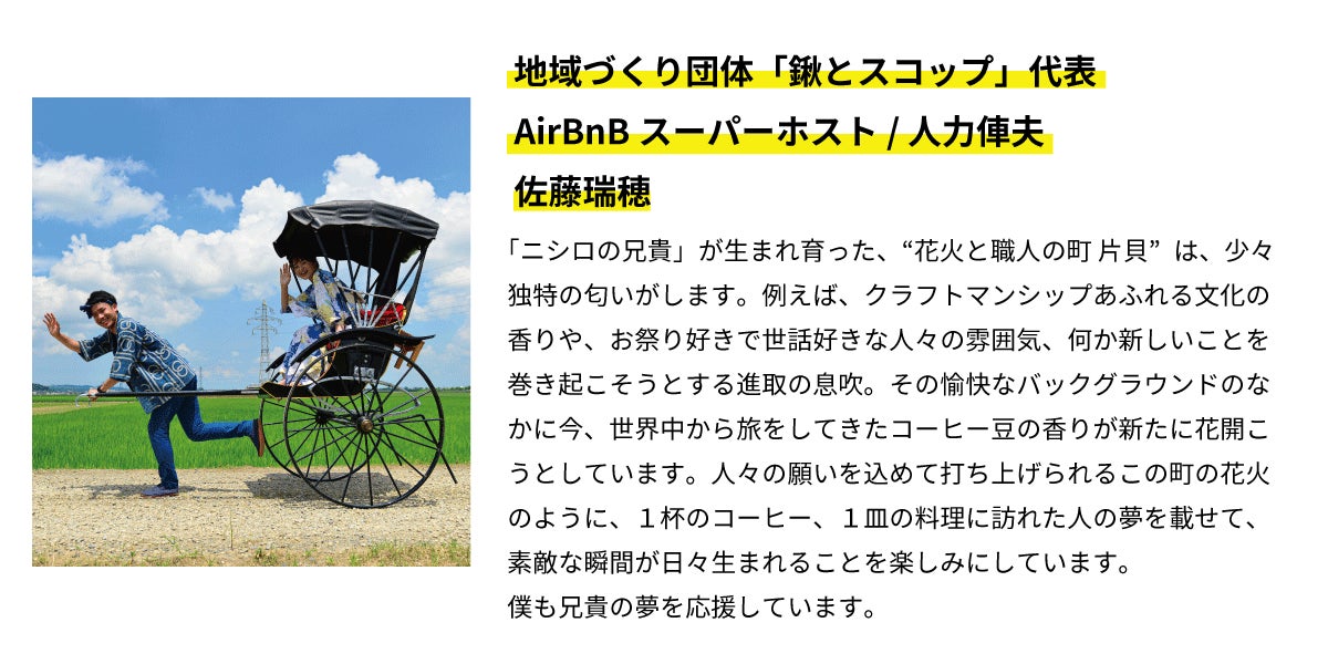 バリスタとして活動すること8年、今まで培ってきたものを結集させ、片貝町でお店を開き、より多くの人にこの町の魅力を届けたいと決意しました。