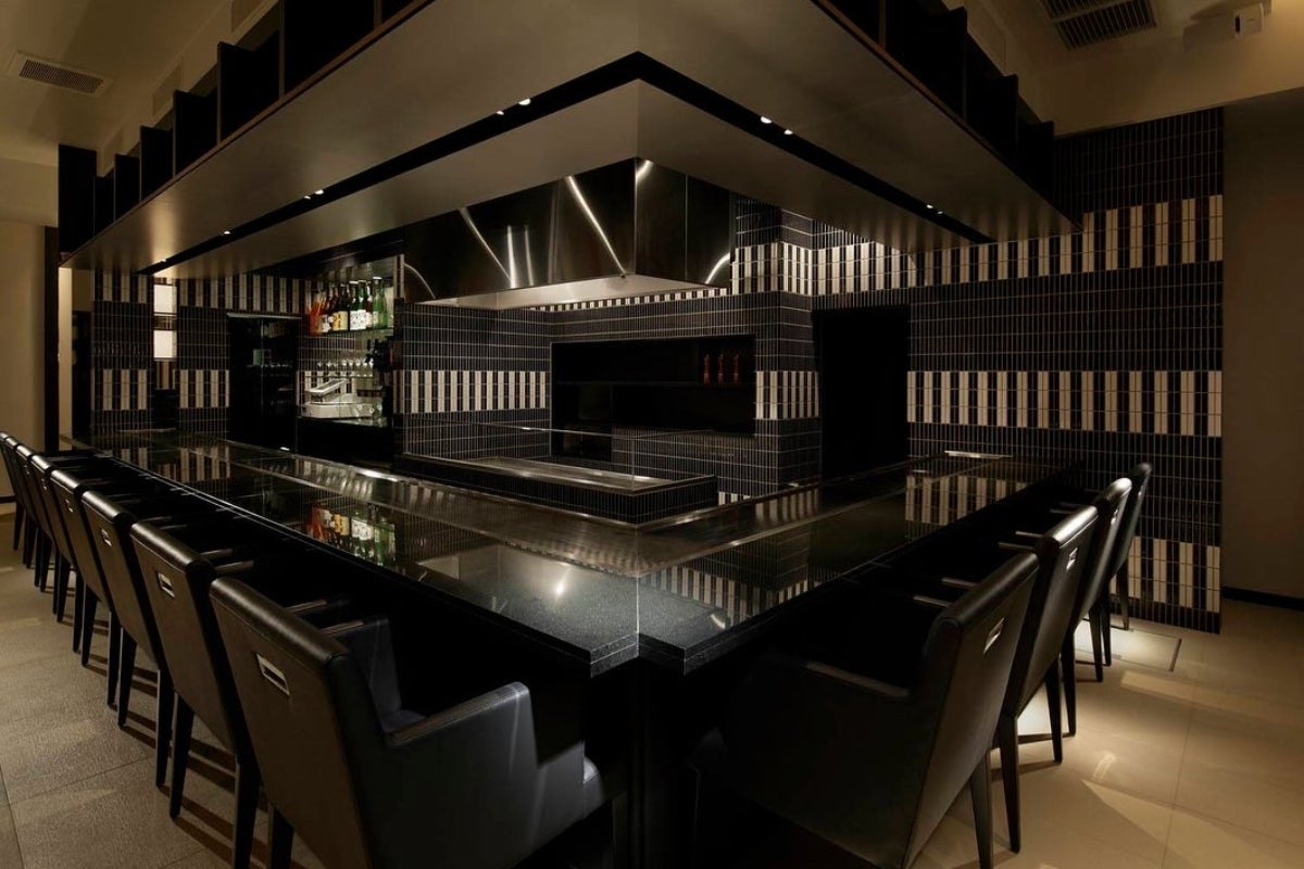 内装は高級感があります。お客様のカウンター席からはガラス一枚を挟んでシェフが料理をしている所を一望出来るオープンキッチンとなっております。