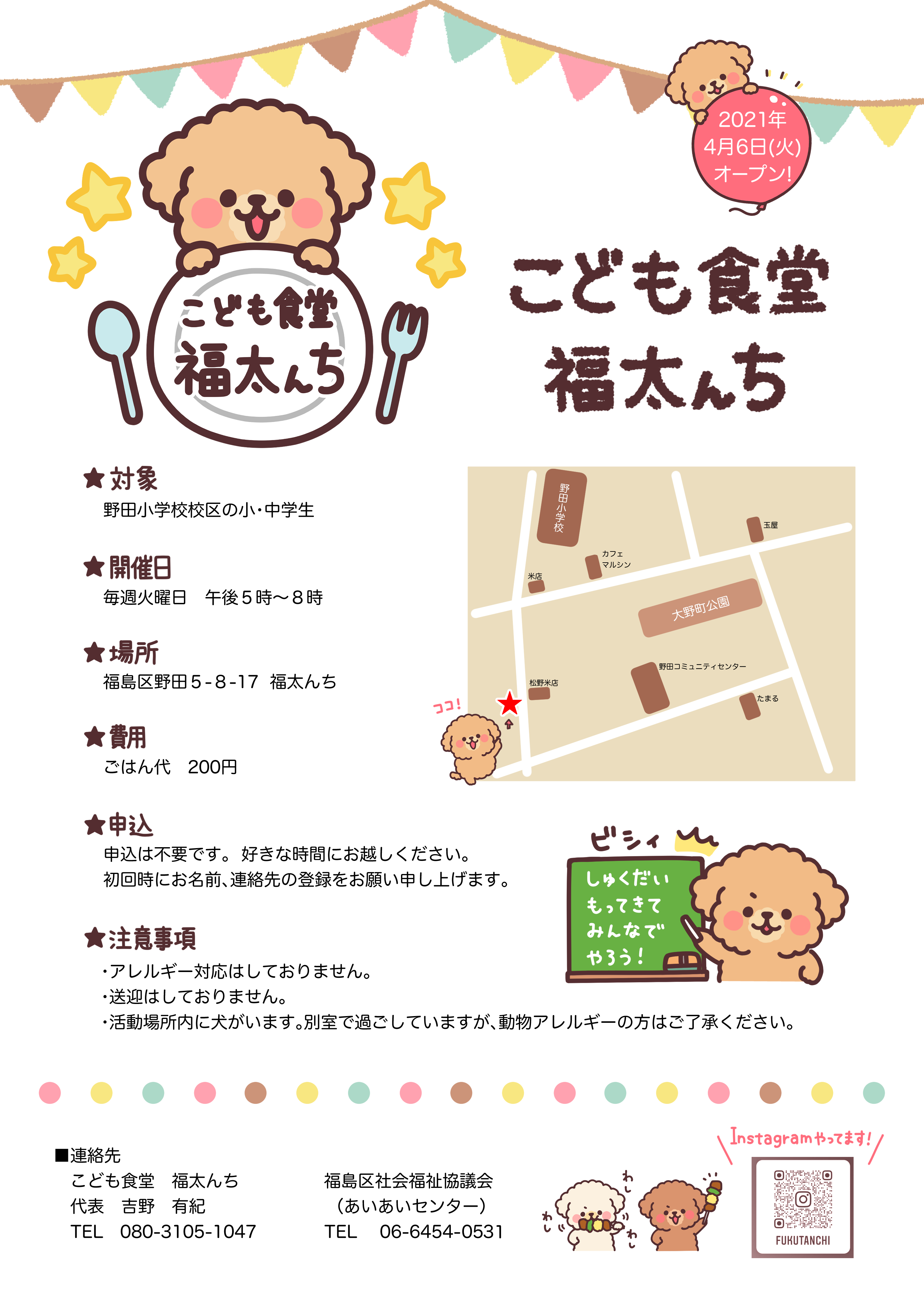 活動場所:大阪市福島区野田5丁目8-17 こども食堂福太んち