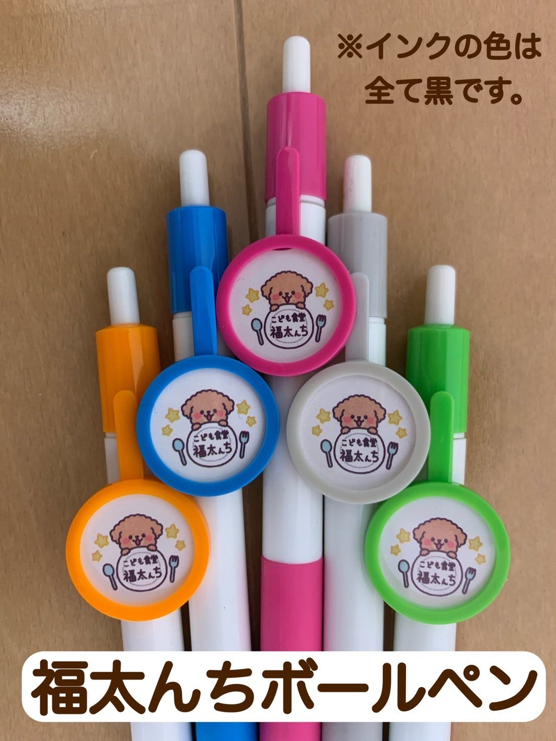 福太んちのロゴ入りボールペン、食堂内にお名前を記載させていただきます。