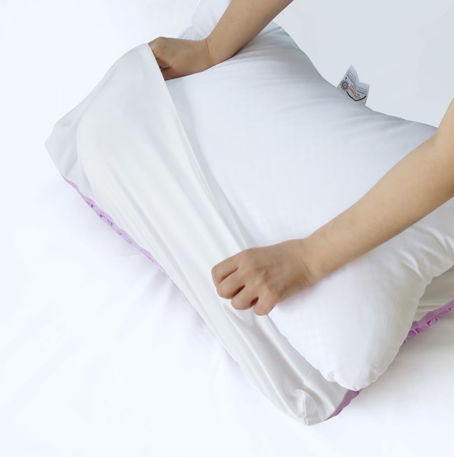 枕の下部(MixdFiber)に、一体化されたナイロンカバーをかぶせるだけで、上部と下部の不快なずれがなくなりました。