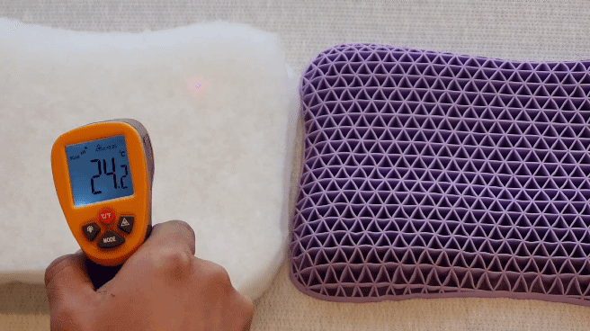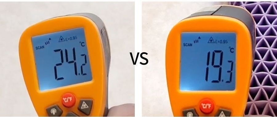 TPE素材の性質とその構造が相まって、一般的な綿素材の枕い比べ、『Fit Nek Ver2.0』のTPE表面温度は 5℃も低い という実験結果がでました。