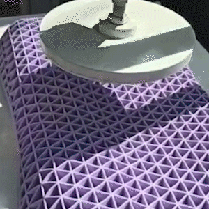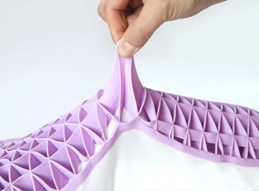 『Fit Nek Ver2.0』の上部TPE(紫の部分)部分は、表と裏で異なる大きさの2種類の三角柱構造。 表面1,038個、裏面280個の2種類の大きさの三角柱を上下に配置。