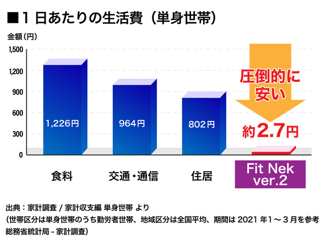 『Fit Nek Ver2.0』を10年間、使用した場合、1日あたりったったの約2.7円で理想の睡眠体験をお届けすることができます。