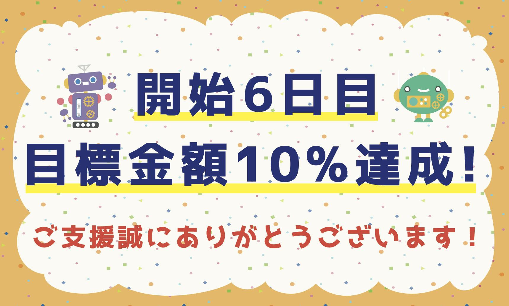 8月11日より挑戦しておりますクラウドファンディングですが、開始から6日目の現在、目標金額の10%となりました!