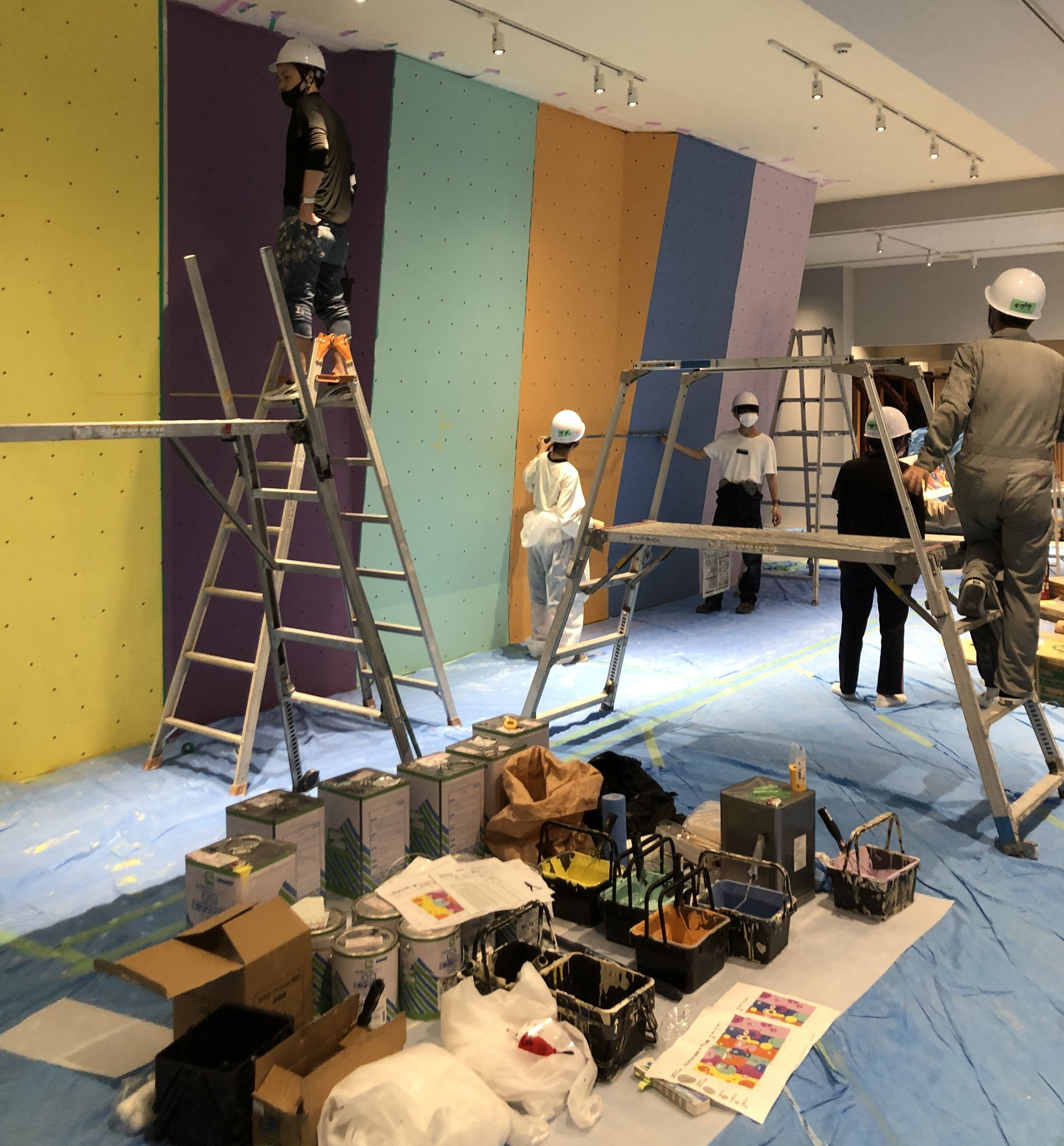 連日、野澤さんたち学生チームが一生懸命にボルダリングの壁に絵を描いてくれています。