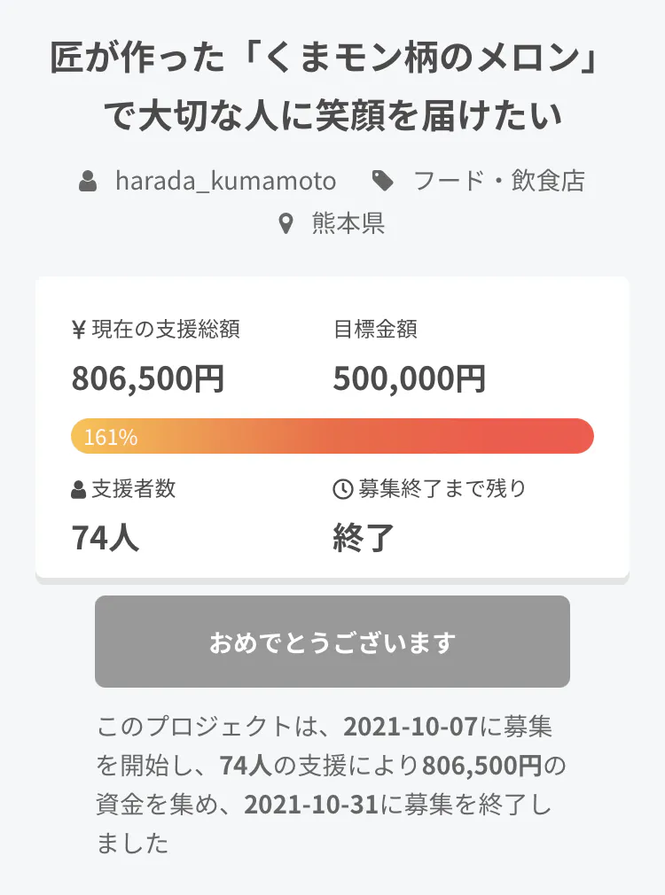 ”くまモン柄のメロンで大切な人を笑顔に届けたい”プロジェクトは完結いたしました!
