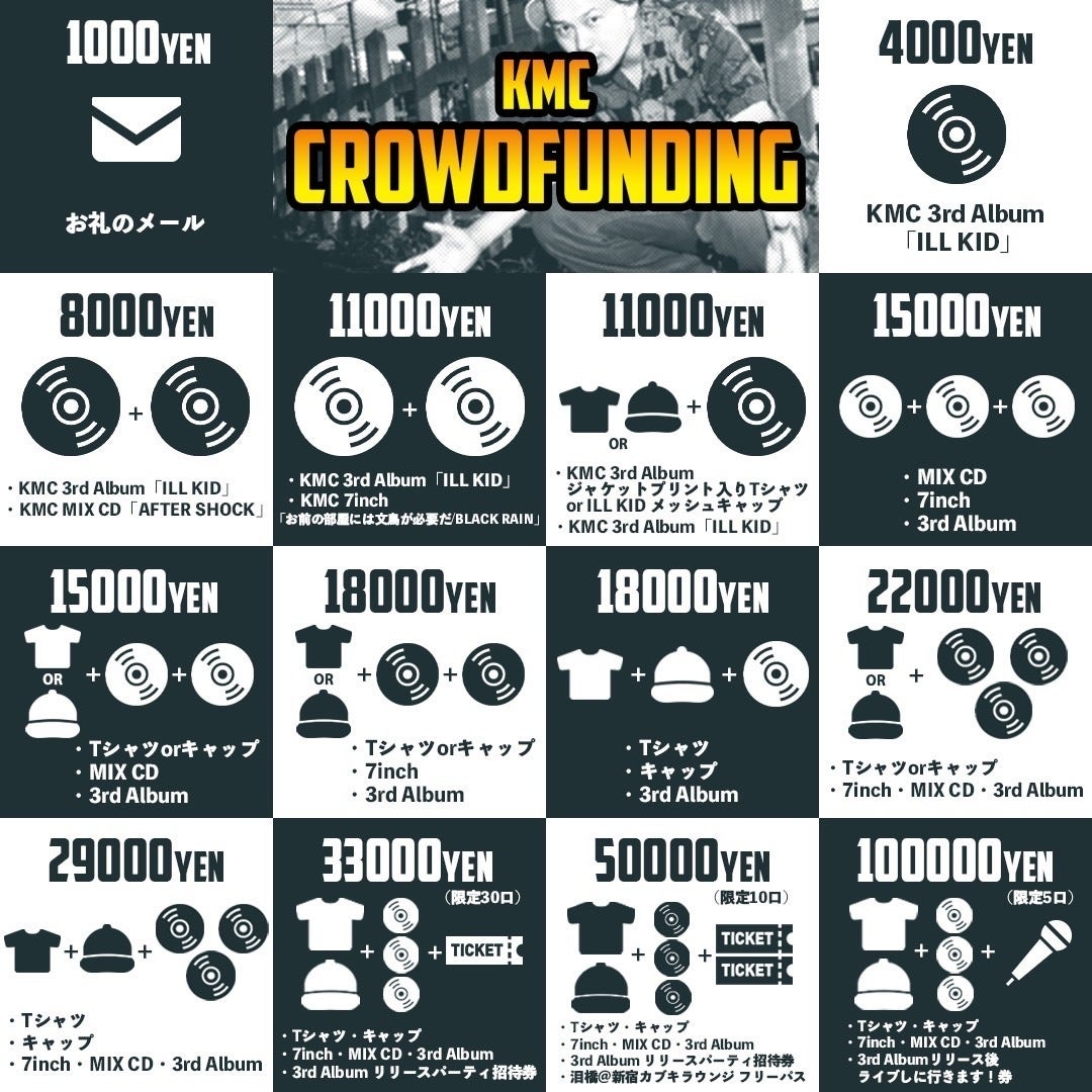 そんな訳でKMC 3rd Album「ILL KID」リリースとリリパのクラウドファンディング何卒宜しくお願いします!