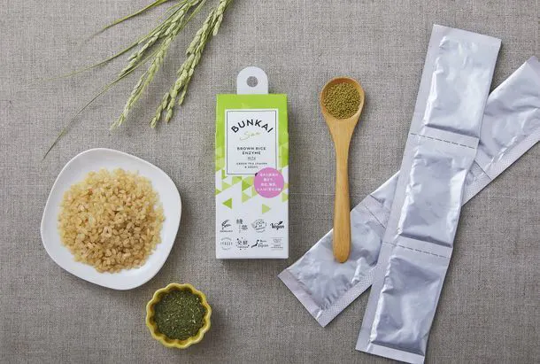 「BUNKAI-Sanは100%ナチュラル&ヴィーガン、人にも地球にも配慮した国産の食品です。食後の習慣に、また、置き換えダイエットにもおすすめ。顆粒を少しずつよく噛んでお召し上がりください。腸こそ健康のカナメ。菌を味方につけて、腸をしっかり整えると、健康と美容は全速力で向こうからやってきます!」