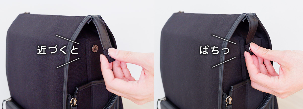 ファスナーの端もマグネットホックを付けていますので