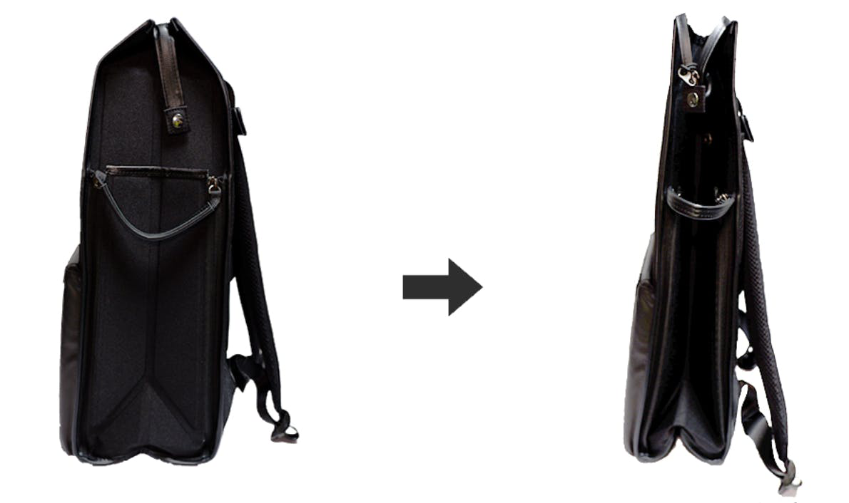 「デイズリュック」上部開口部から仕切りを折り畳んでいる動画