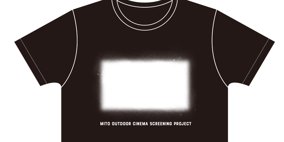 水戸野外映画上映オリジナルデザインTシャツ。ボディはしっかり目の5.6oz綿100%の天竺Tとなります。サイズ:160/S/M/L/XL、ボディ色は黒(刷色:白)/白(刷色:灰)よりお選びください。