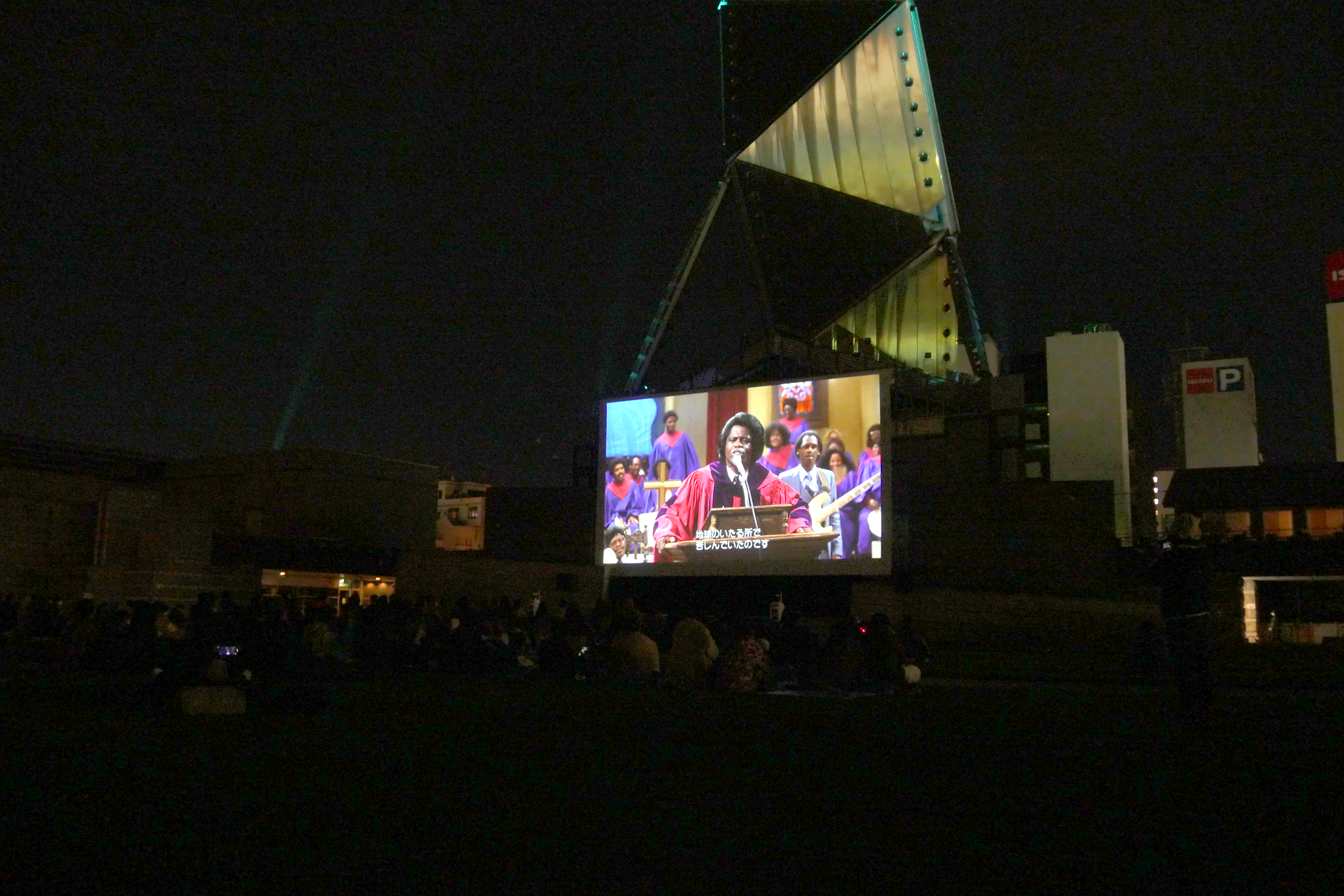 「水戸野外映画上映会」は2012年より毎年9月水戸芸術館広場にて行われている映画の上映会です。