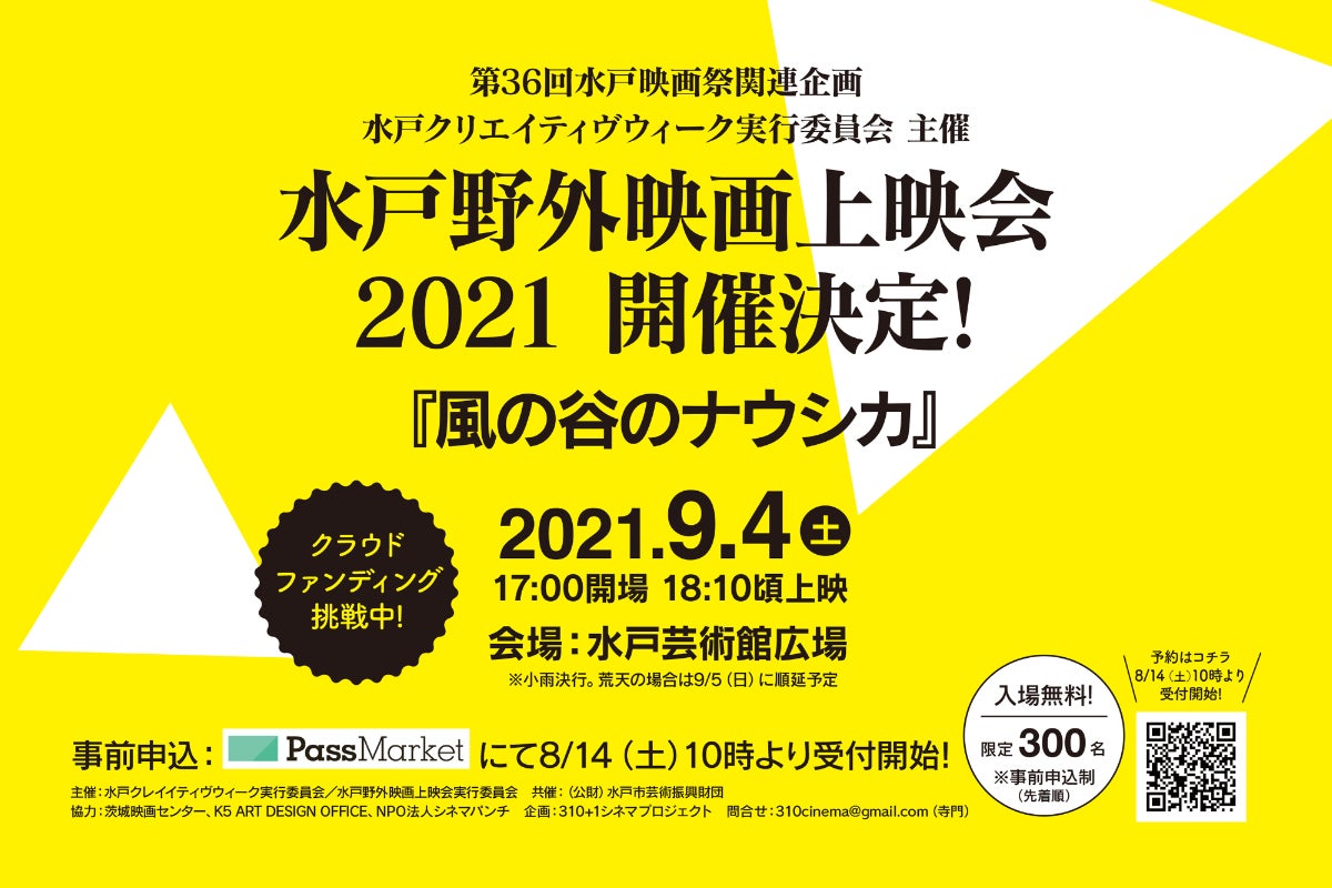 2021/09/09 19:53クラウドファンディングたくさんのご支援ありがとうございました。また会場での寄付もありがとうございました!実施予定日だった9/4(土)は雨予報のため、翌日9/5(日)に延期し無事上映いたしました。参加者の皆様においては急な延期に対応いただきありがとうございました。また、予定が合わず来場できなかった皆様、大変失礼いたしました。完全予約制、分散入場受付、十分なソーシャルディスタンスをとった上での上映会となりました。風が強く後半は寒さも感じられましたが、「風の谷」とシンクロするような感じもありとても良い上映会になったのではと思います。コロナ禍でなければ、よりたくさんの方とこの場を共有できたことを思うと苦々しい思いですが、この体験も心に刻んでいきたいと思います。来年も可能であれば開催したいと考えております。皆様のご理解とご協力があってこその上映会。是非来年もどうぞ宜しくお願いします。最後に関係者の皆様、会場を提供いただきました水戸芸術館様ありがとうございました。なお、リターンに関しては準備が整い次第発送いたします。もう少々お待ちいただければ幸いです。 もっと見る