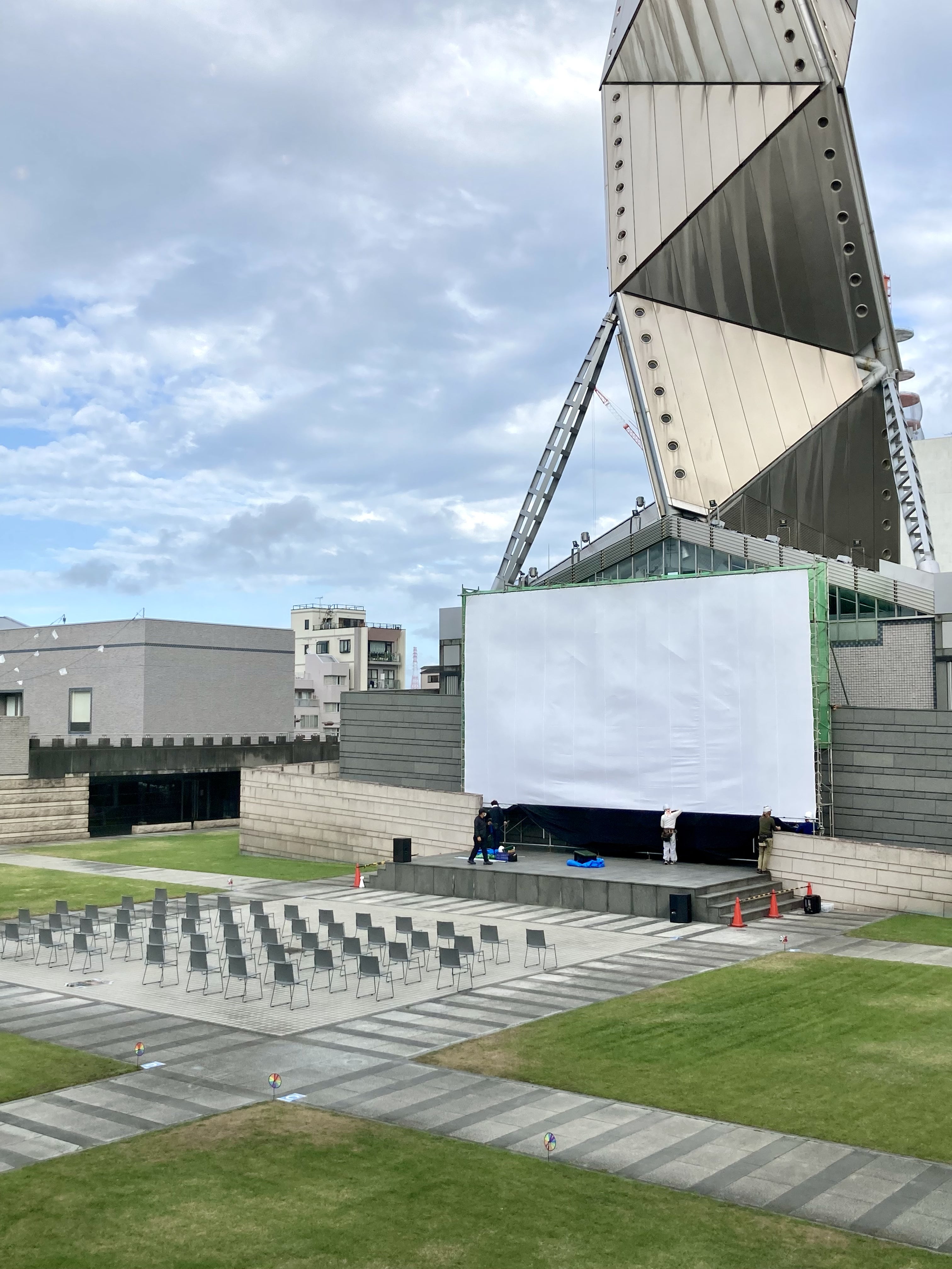 完全予約制、分散入場受付、十分なソーシャルディスタンスをとった上での上映会となりました。風が強く後半は寒さも感じられましたが、「風の谷」とシンクロするような感じもありとても良い上映会になったのではと思います。コロナ禍でなければ、よりたくさんの方とこの場を共有できたことを思うと苦々しい思いですが、この体験も心に刻んでいきたいと思います。