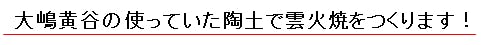 大嶋黄谷は雲火焼の作陶の技術を弟子に伝えなかったため一代限りで途絶えました。そして陶土の採取場所も不明のままでした。