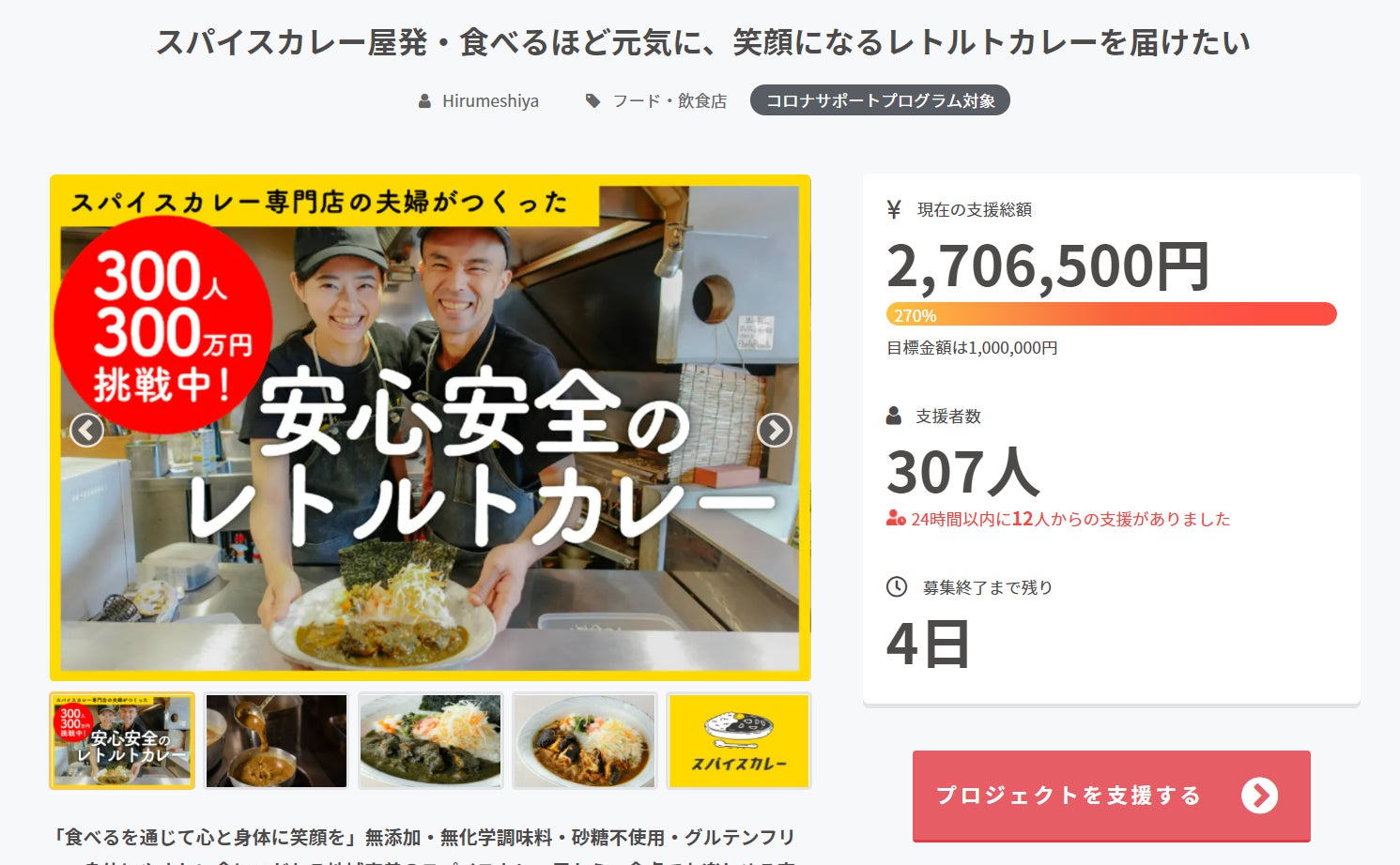 クラウドファンディング終了後、レトルトカレーを通して