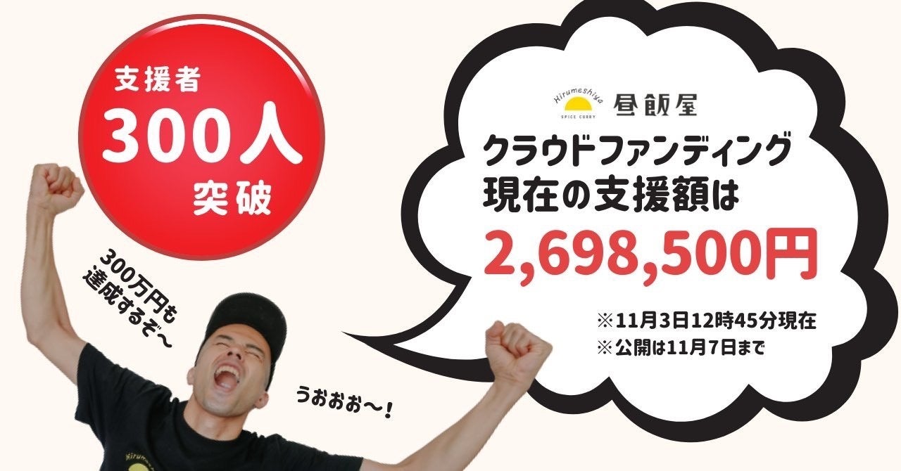 サードゴールその1:支援者300名。11月3日7:00ジャストに