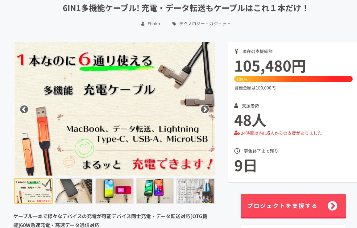 私自身、いい物をより使いやすく、出来る限りシンプルにという想いで、このプロジェクトを行っております。今回の多機能ケーブルが皆様の日常により良い快適な日々をお届け出来ることを願っております。