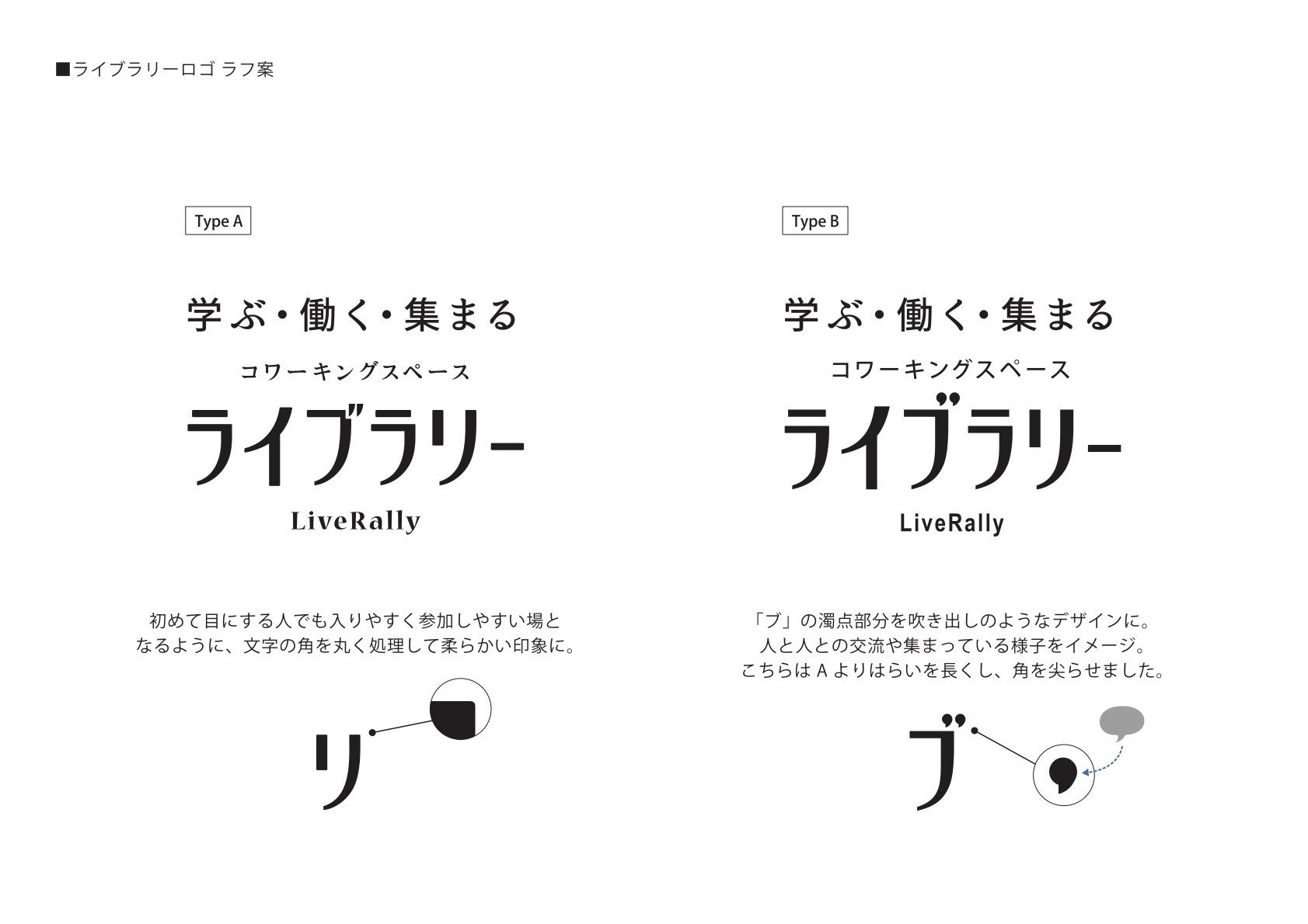 当初は、文字のみのロゴをと考えていたのですが、やはりアイキャッチ的にシンボルとなるものがあった方がいいと思い、引き続きラフ出しを行っています。
