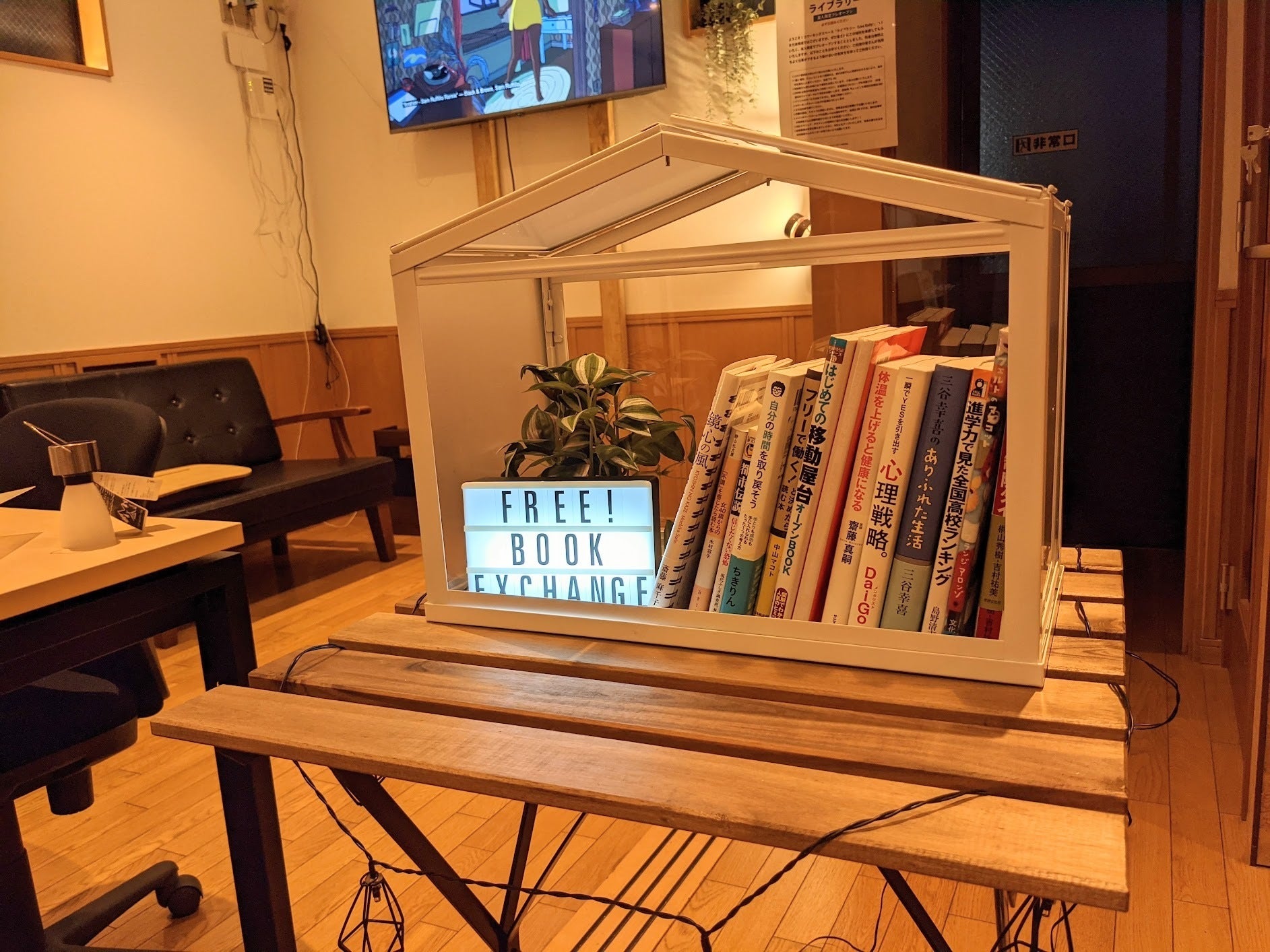 「ライブラリー」よろしく、店先に本の無料交換所を設置することとしました。
