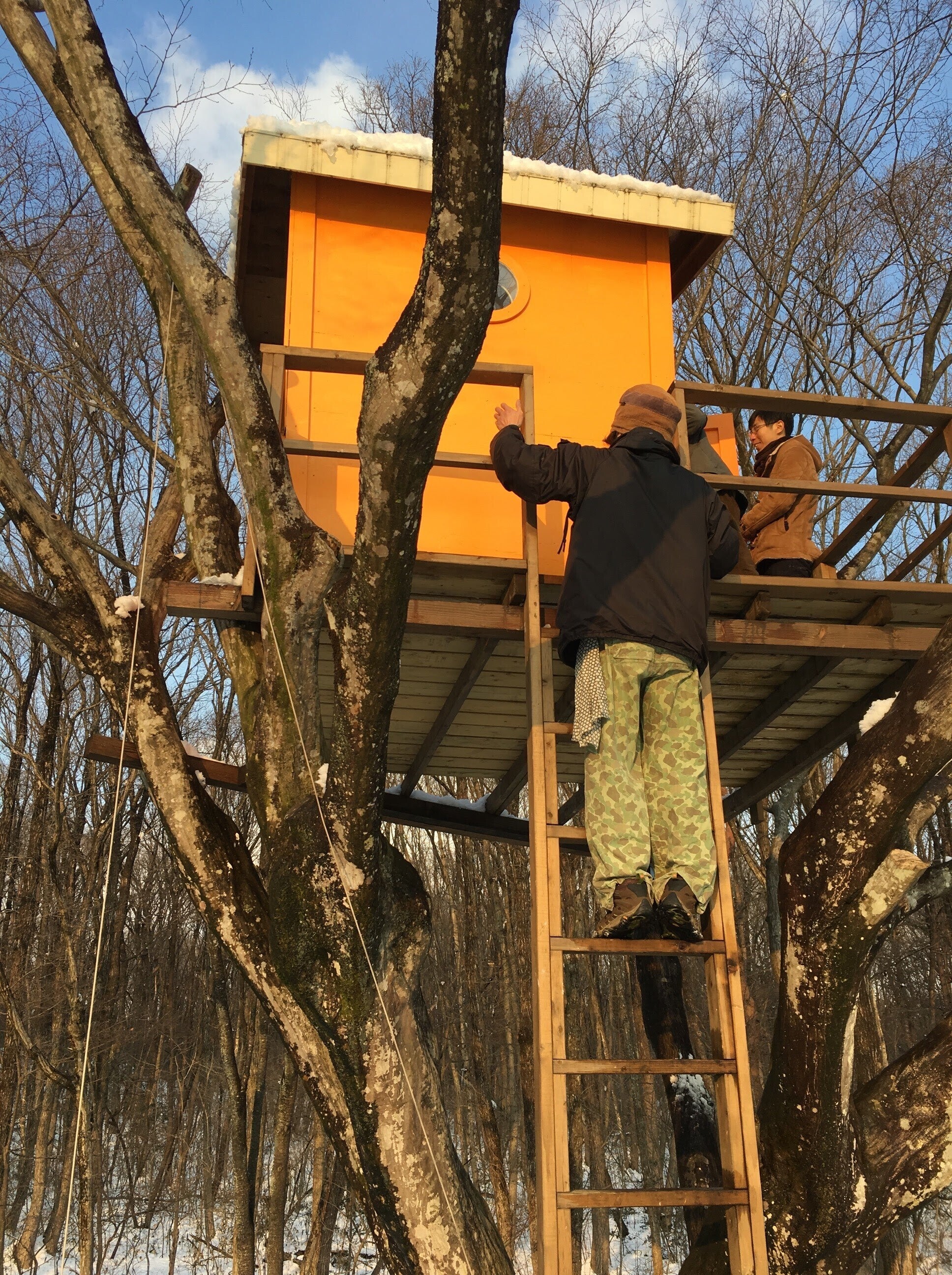 ツリーハウスは、階段ではなく、わざわざ出入りに不便なハシゴを使って入退出をします。これがツリーハウスの醍醐味だと言います。