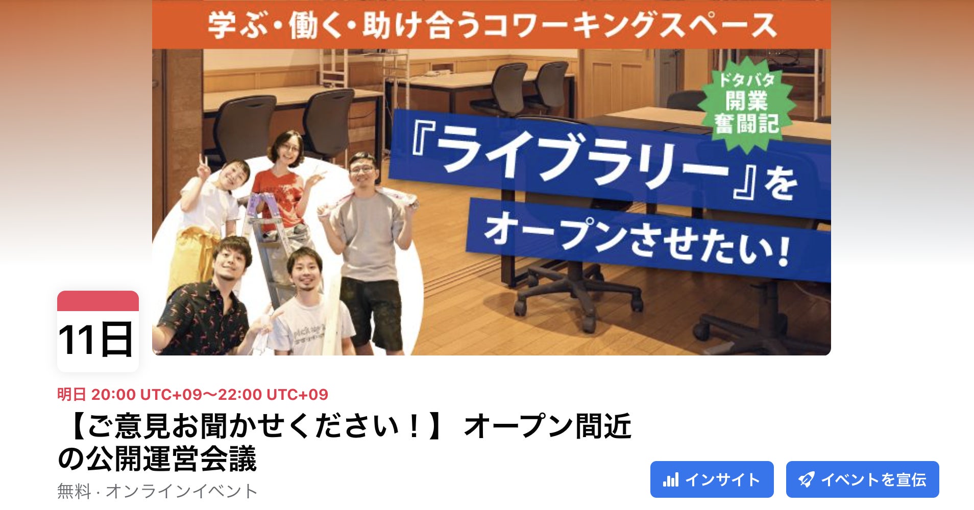 急遽ではありますが、明日9月11日(土)の20時〜22時ころまで、ライブラリーの公開運営会議として、配信イベントを行いたいと思います!