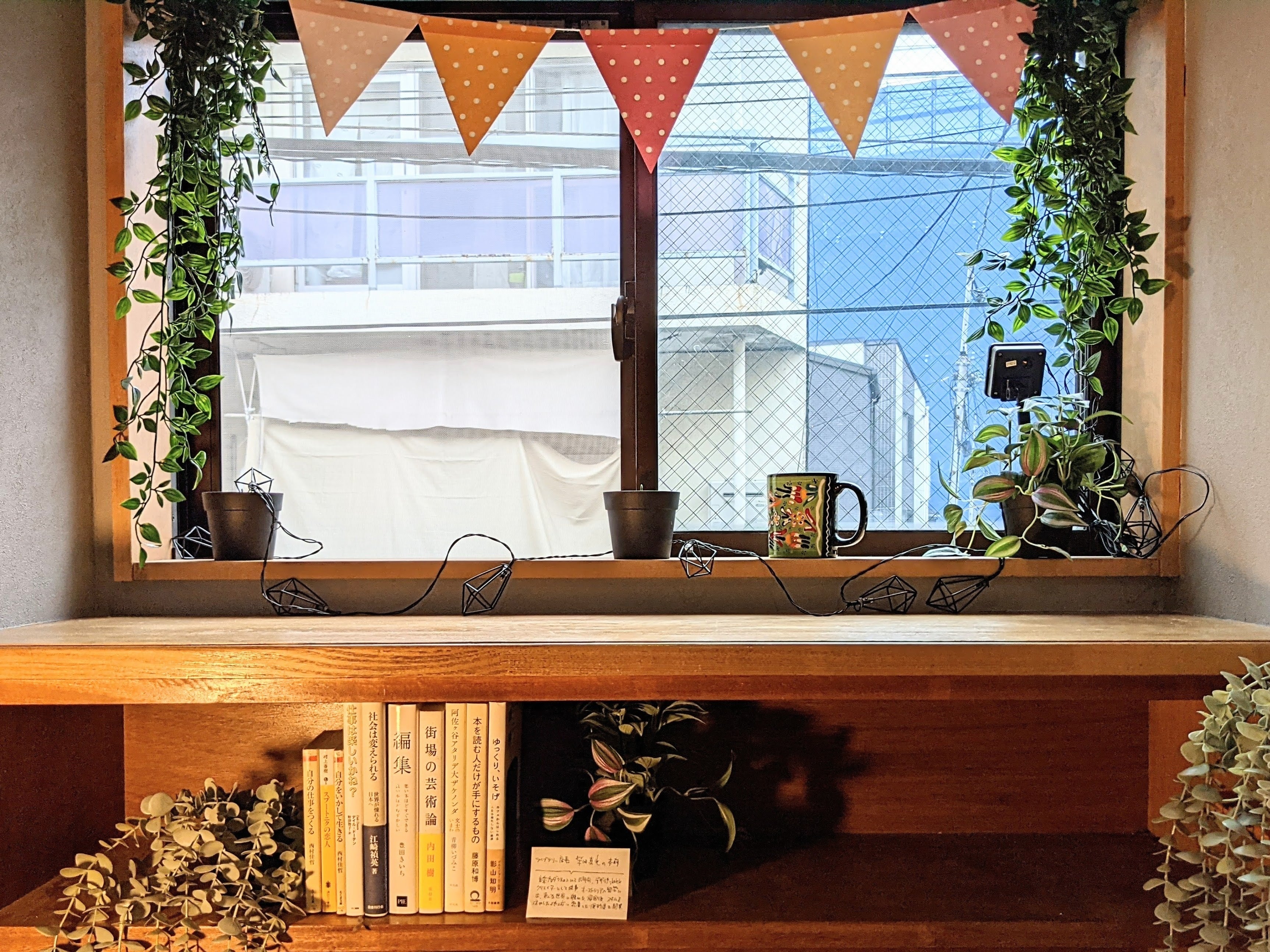 棚の高さは195mmとなります。もしそれ以上の大型本をご希望の方は、窓手前の天板の上にて本棚を展開いたします。
