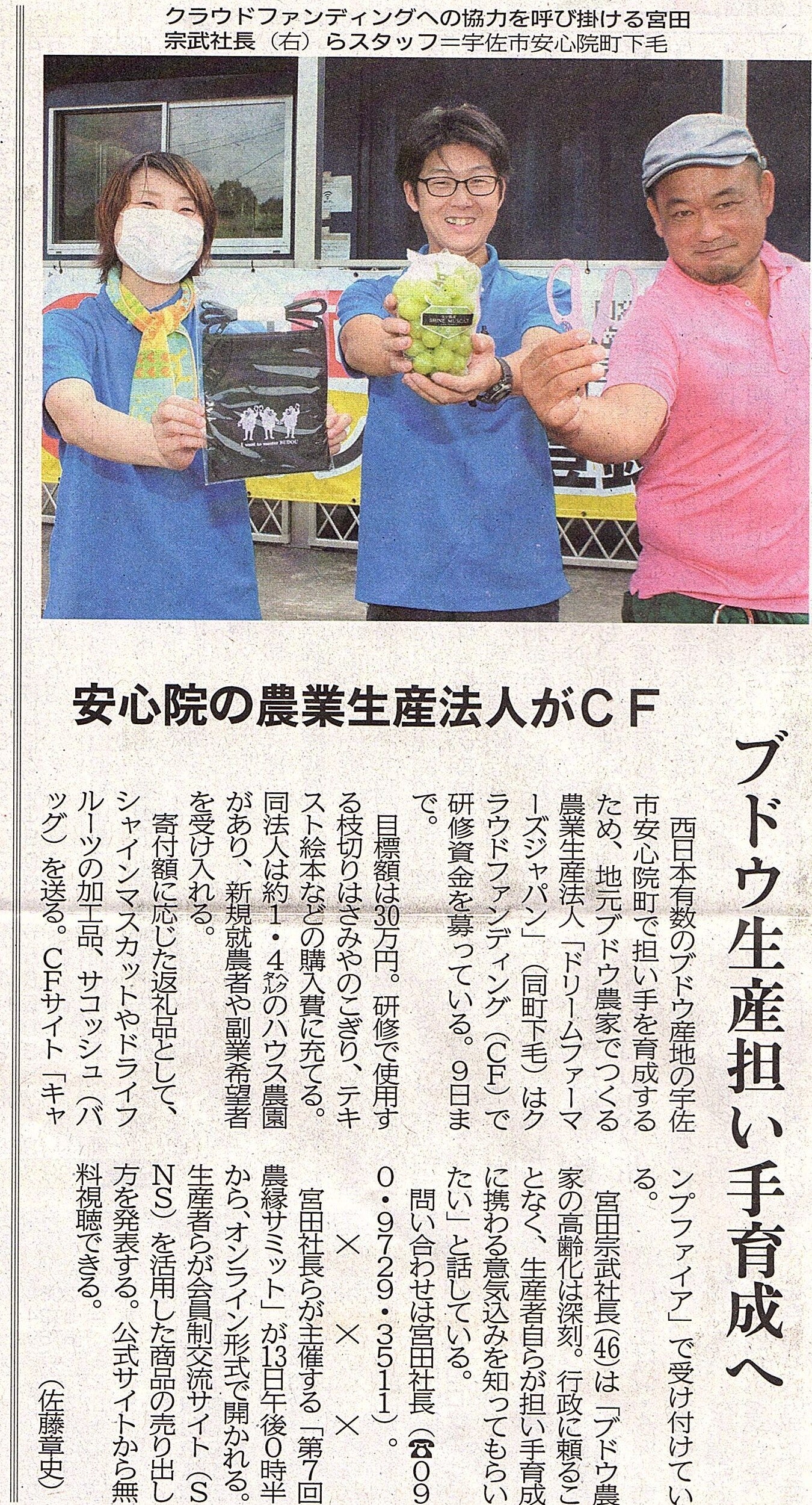 こんにちは。ドリームファーマーズJAPANクラウドファンディング担当の井上です。週末の10月9、10日に農村BASEにて“非密のぶどう畑大作戦”が行われます。この“非密のぶどう畑大作戦”は、安心院の地域内のお店にて1000円のお買い物で抽選券を1枚もらえるという仕組みで、今回10000枚を作成しているので、地域内の経済効果は1000万円。地域を盛り上げたい!をカタチにした取り組みとなっておりまして、抽選会ではシャインマスカットが当たる企画となっております。他にもショップ、カフェもございますので、今週末は安心院の農村BASEにおいでください。