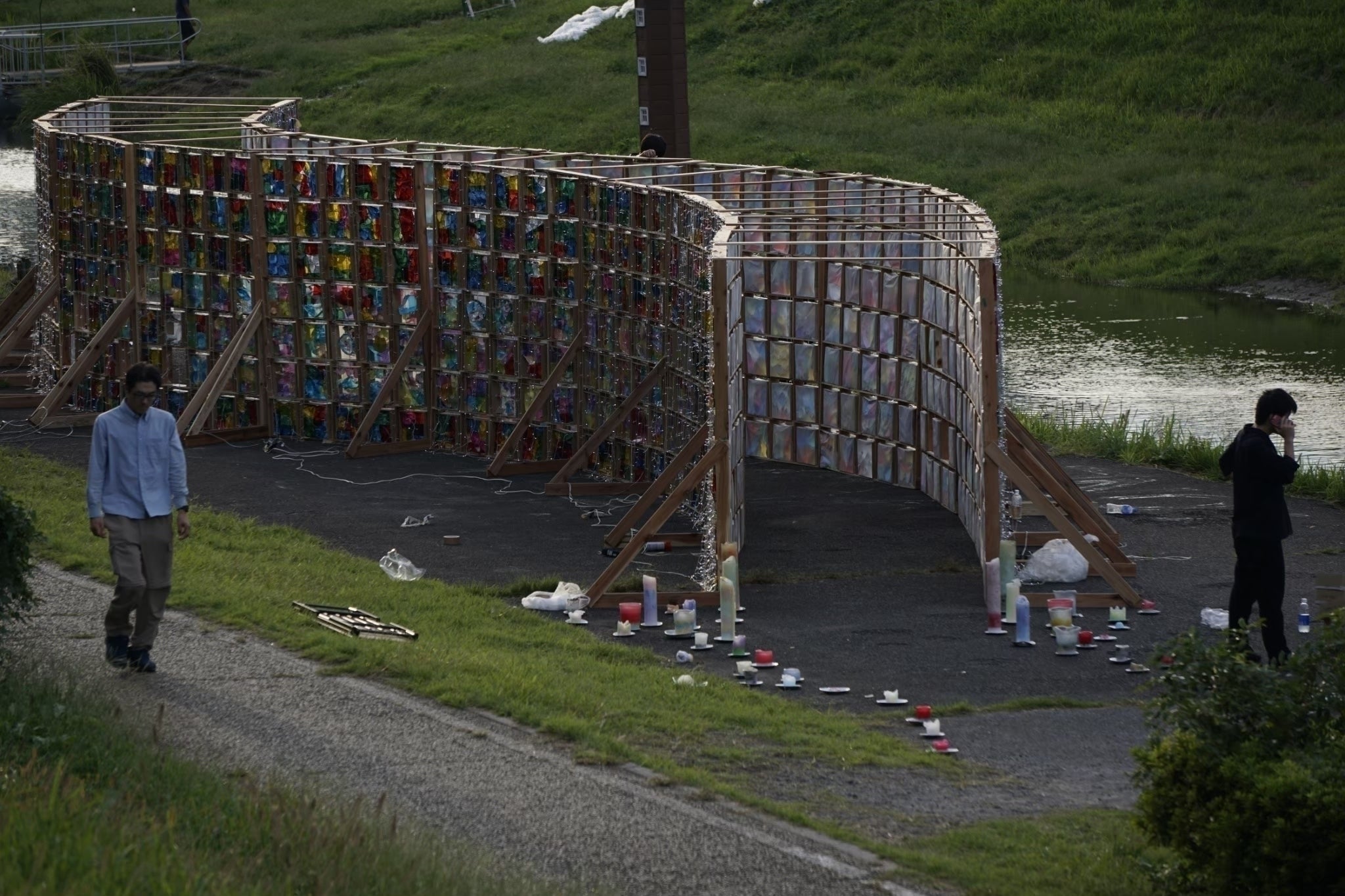 例年使用している、運河水辺公園の北岸・南岸に加えて、割烹新川本館の敷地と西深井散策の森を会場とする予定です。利根運河を一世紀以上見守ってきた割烹新川さんの敷地と水辺とは違う環境を持つ森を会場に加えることで、それぞれ雰囲気の異なる空間演出を行います。また、これはコロナ対策として、会場の密を避けるための試みでもあります。
