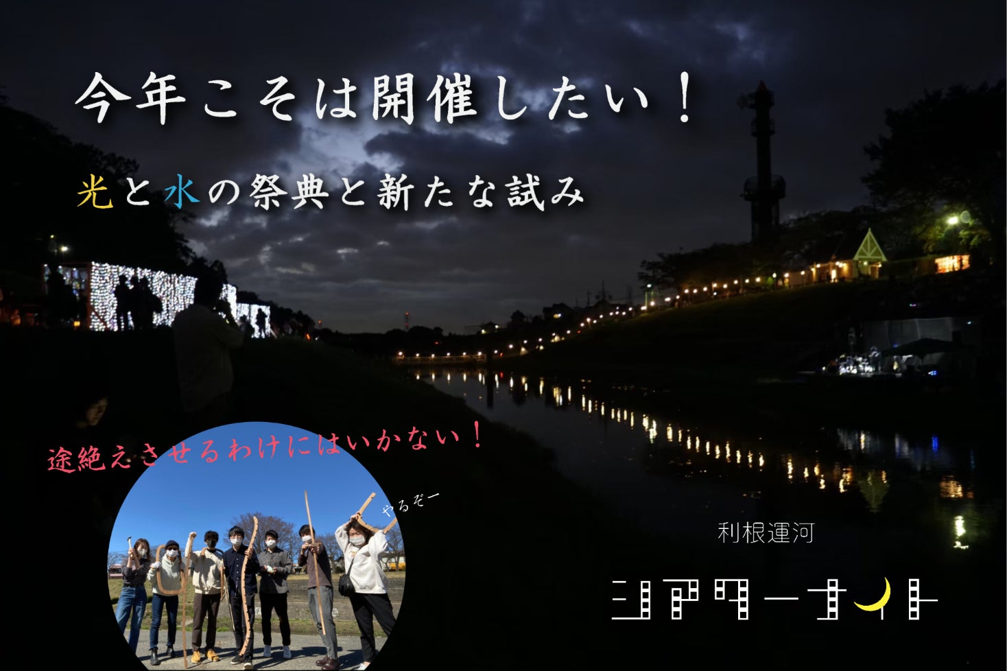 利根運河シアターナイトとは、例年秋ごろに利根運河を舞台に開催する光と水の祭典です。毎年、地域にお住まいの方と、学生、その他多くの方の交流の場として、本イベントを開催しています。昨年は、新型コロナウイルスの感染拡大の影響を受け開催できず、コロナ禍であってもできることを模索しながら活動した一年でした。新型コロナウイルスの感染拡大に配慮した、例年とは異なる形とはなりますが、今年こそは、「利根運河シアターナイト」を開催したいと意気込んで活動しています。また、昨年の経験から、これまでは取り組んでこなかった、新しい企画にも挑戦したいと考えています。しかしこれには、コロナ対策にかかる費用なども含めて、例年よりも多くの資金が必要です。皆さんの、ご支援よろしくお願いいたします!